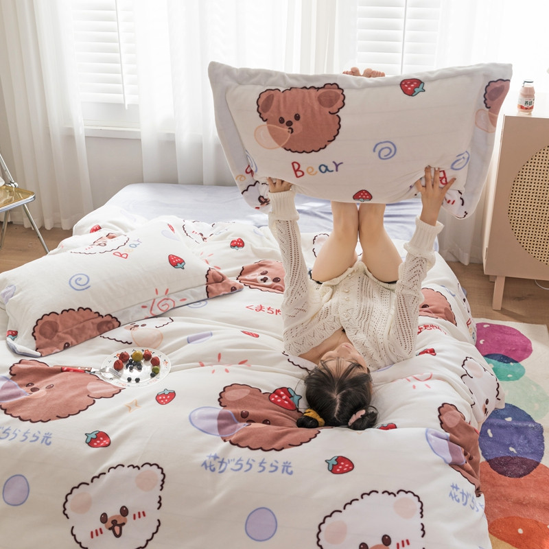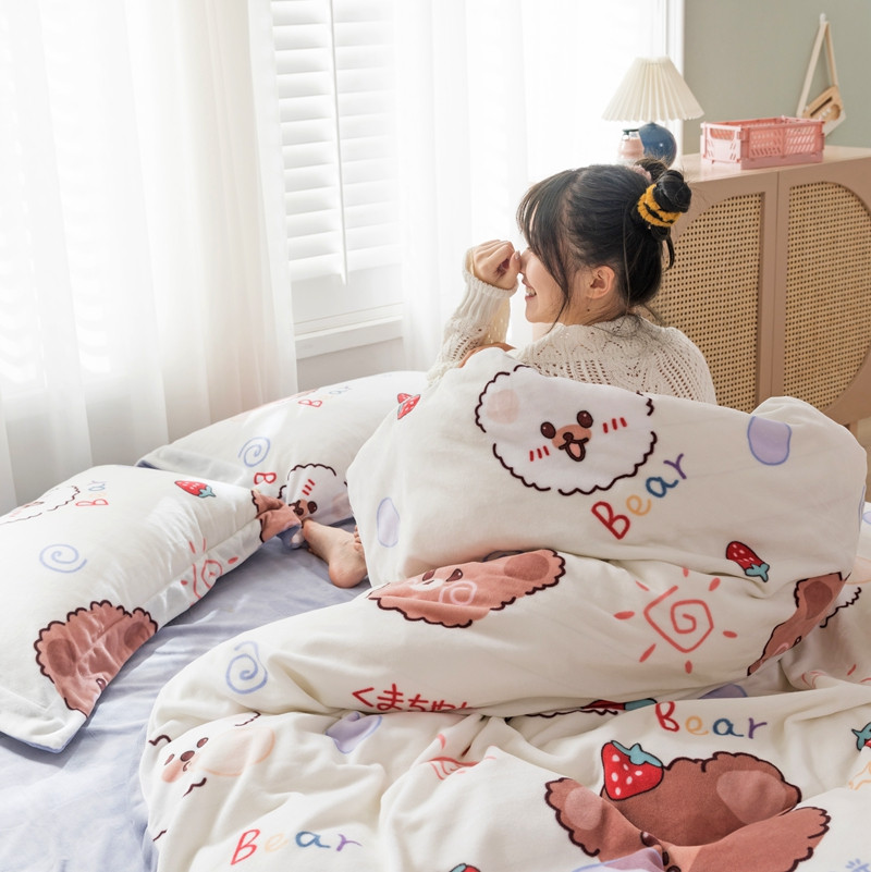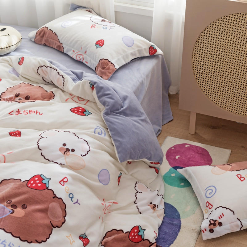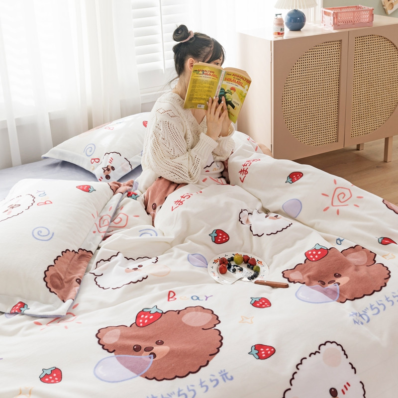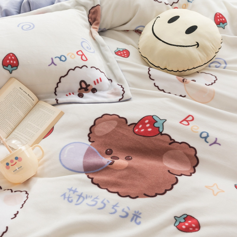 柚子 2020新款牛奶绒印花大版四件套 泡泡熊