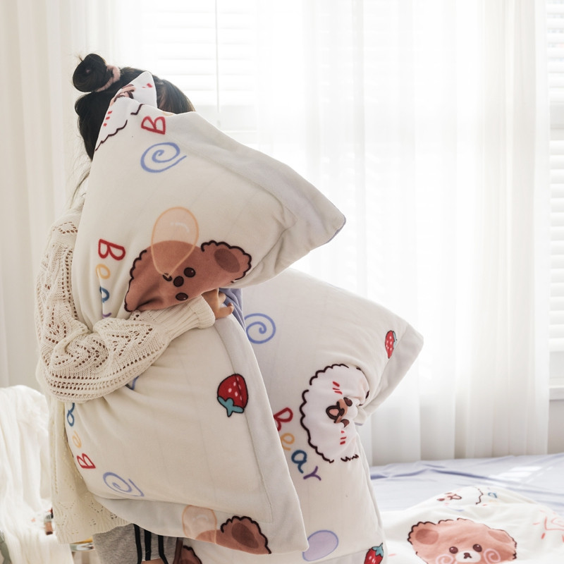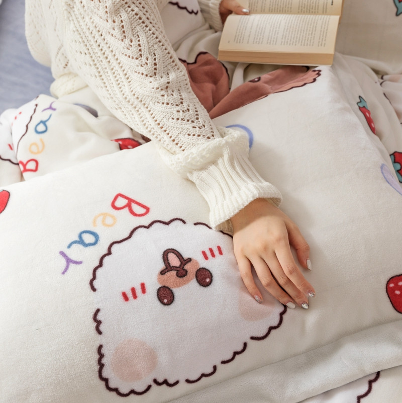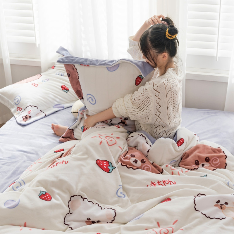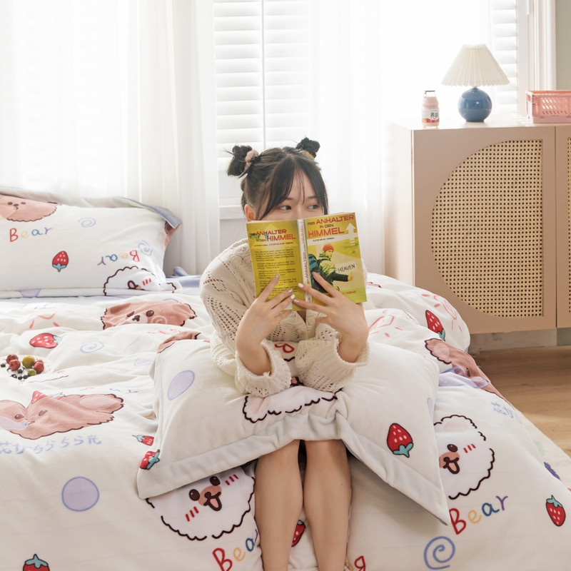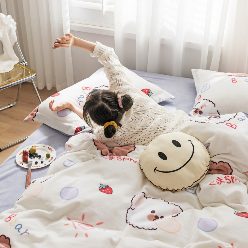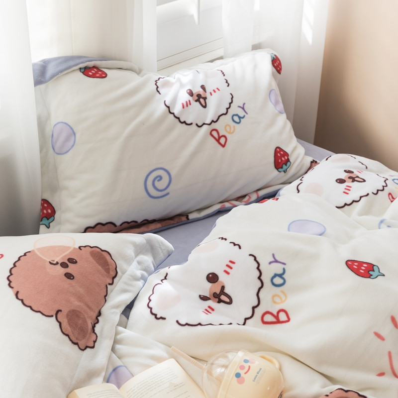 柚子 2020新款牛奶绒印花大版四件套 泡泡熊