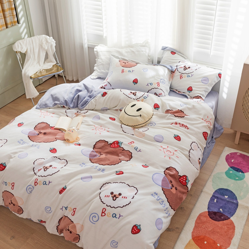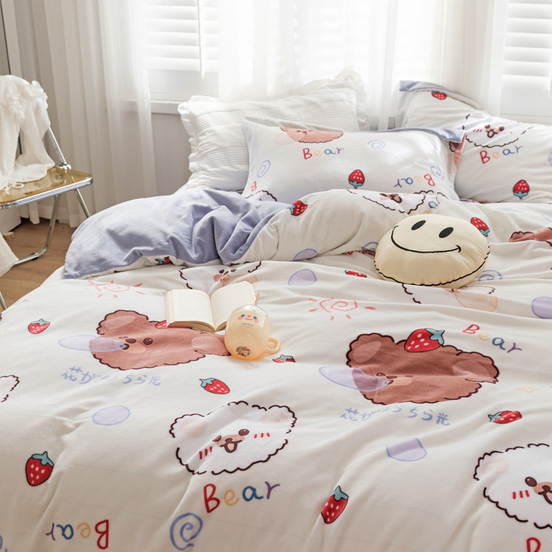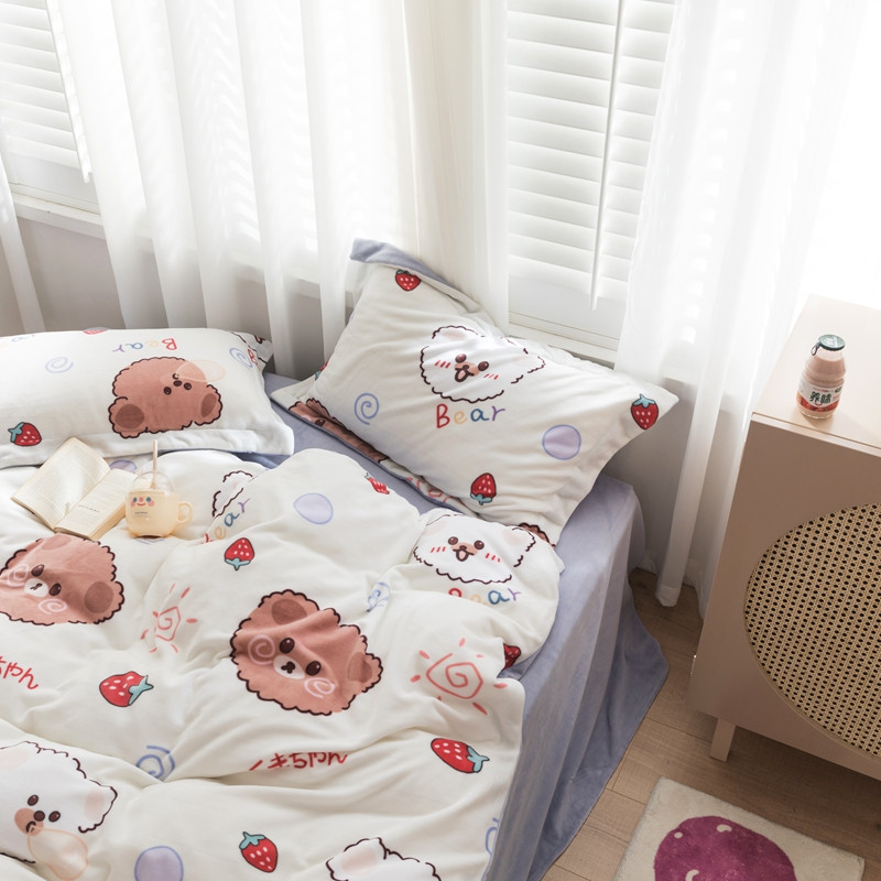 商品名称:柚子 2020新款牛奶绒印花大版四件套 泡泡熊