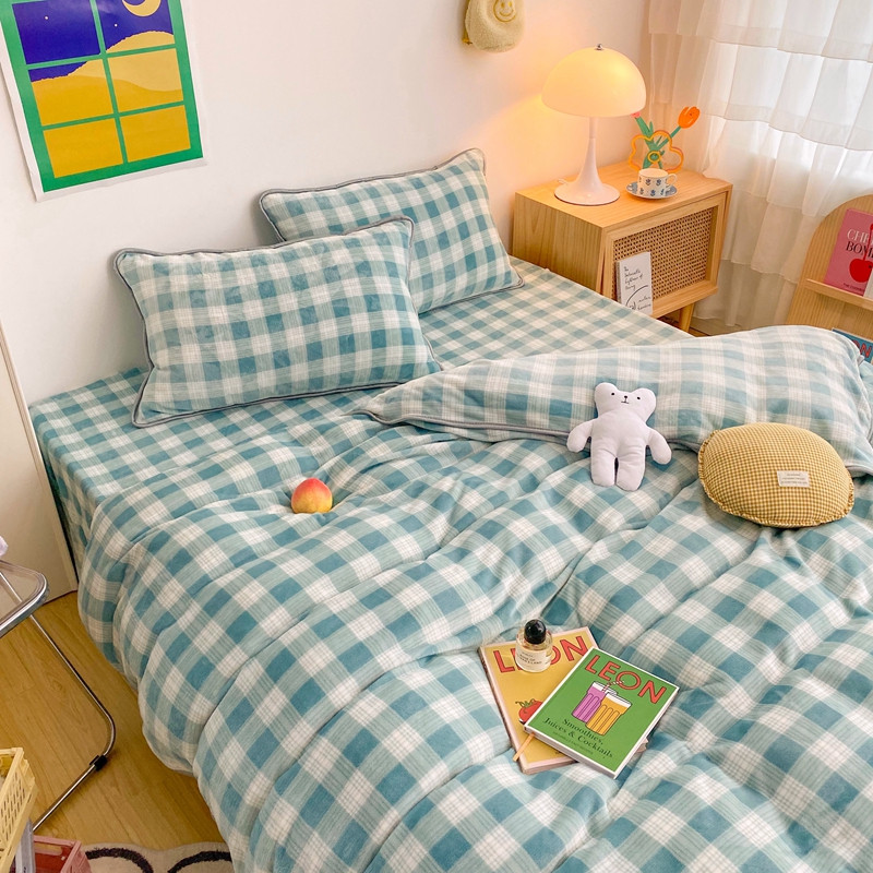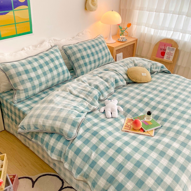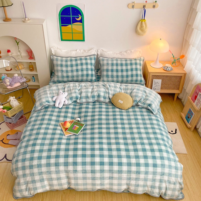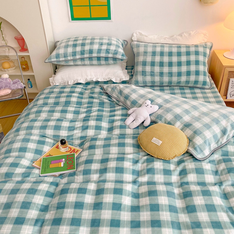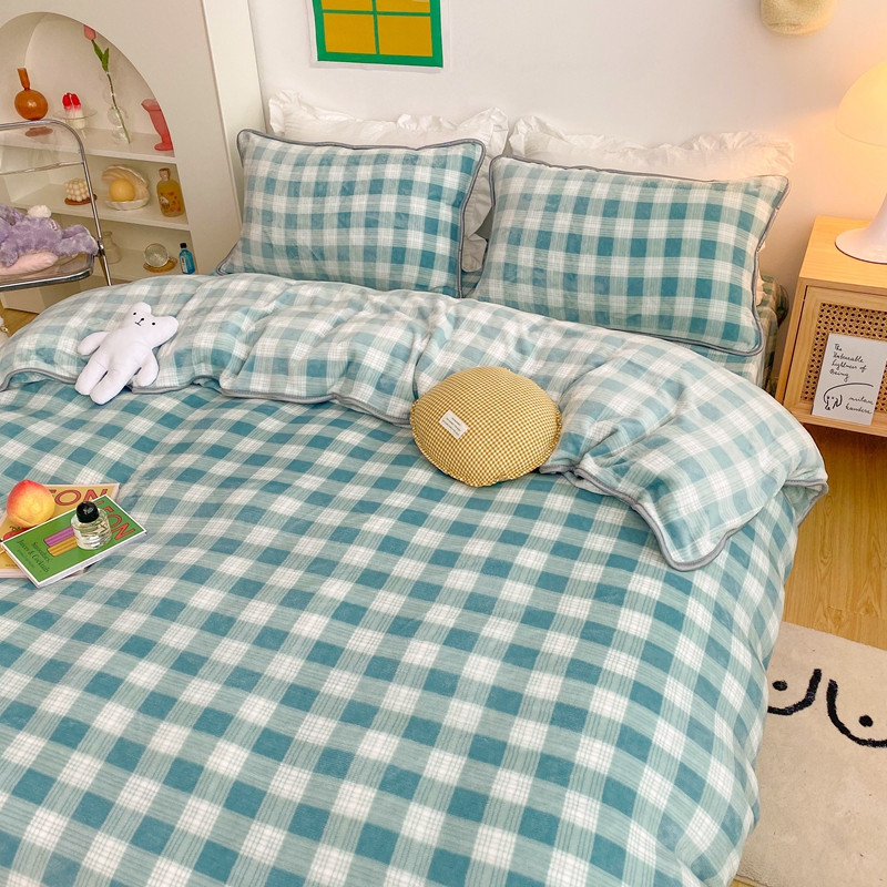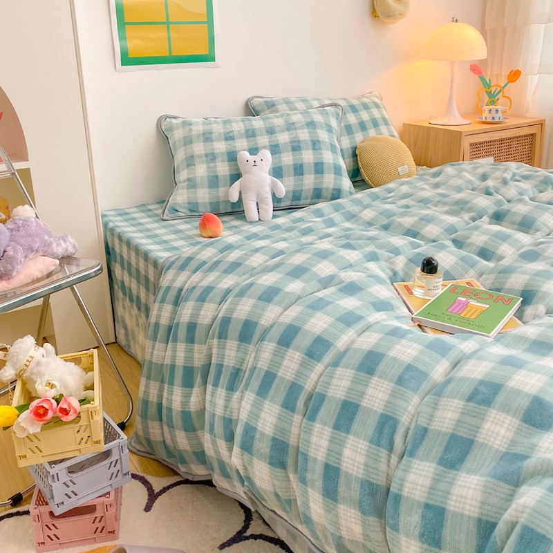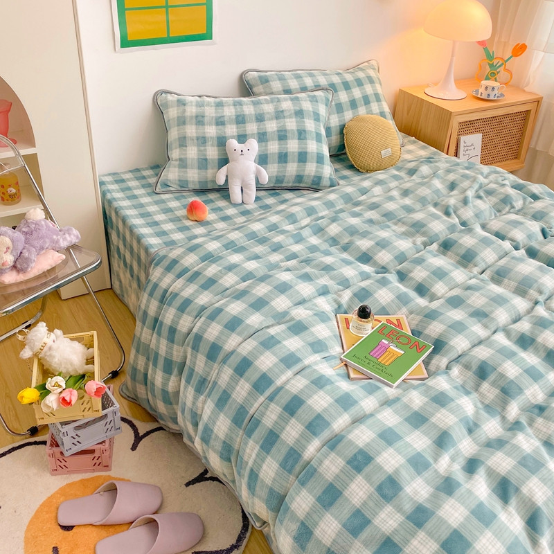 (总)顾里家纺 2024新款格子蝴蝶结毛巾绣牛奶绒四件套,粉格蝴蝶结,粉蓝蝴蝶结,黄格蝴蝶结,蓝格蝴蝶结,绿格蝴蝶结