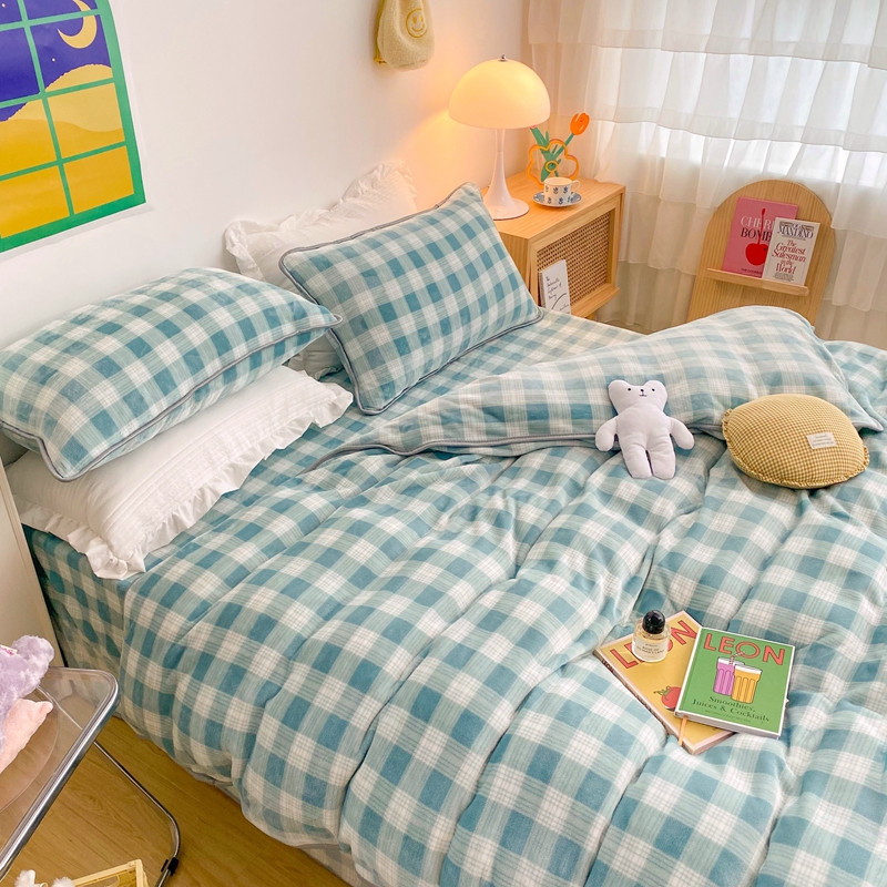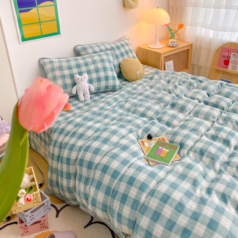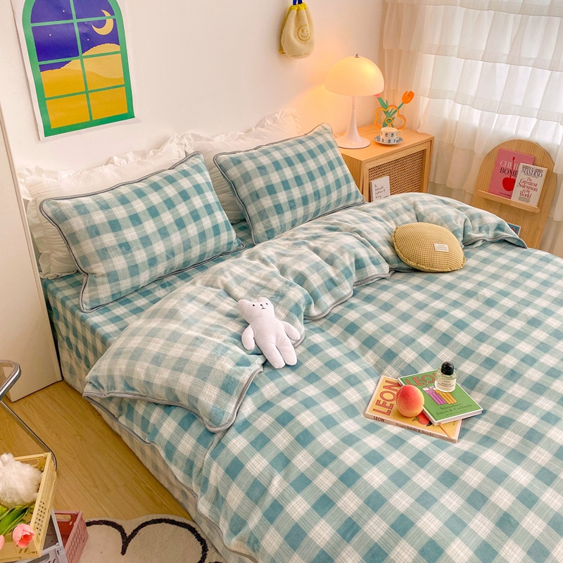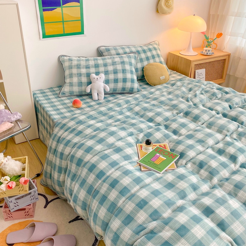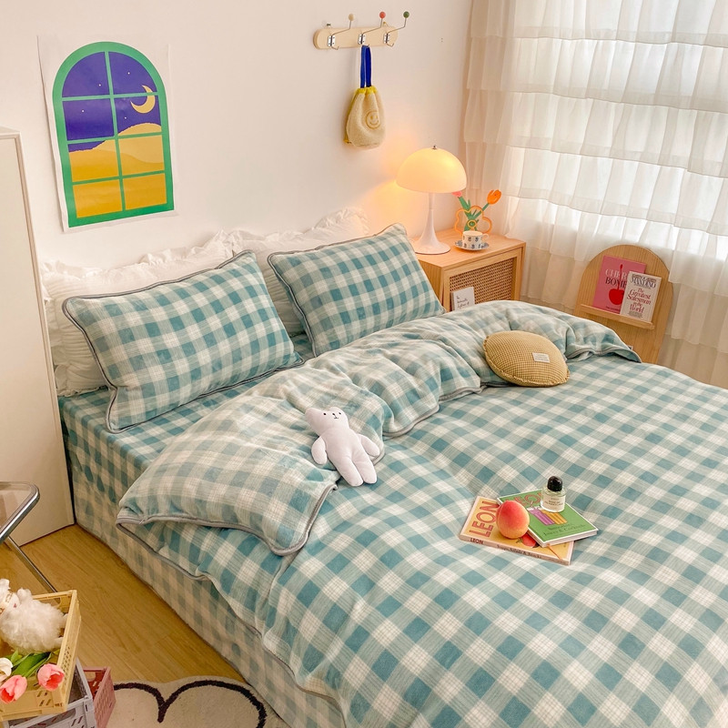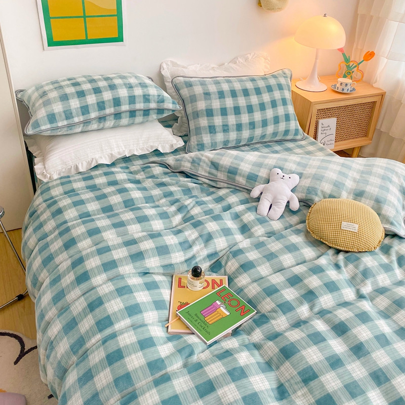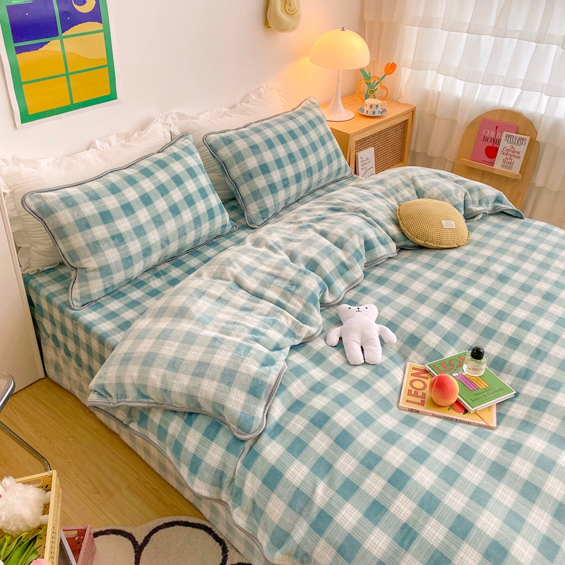 (总)顾里家纺 2024新款格子蝴蝶结毛巾绣牛奶绒四件套,粉格蝴蝶结,粉蓝蝴蝶结,黄格蝴蝶结,蓝格蝴蝶结,绿格蝴蝶结