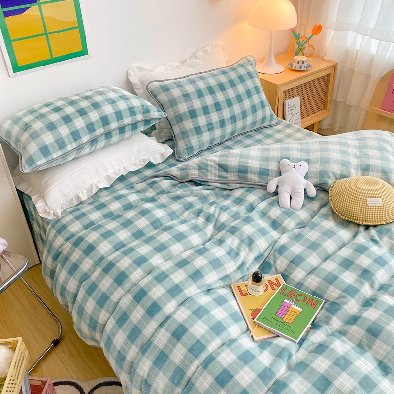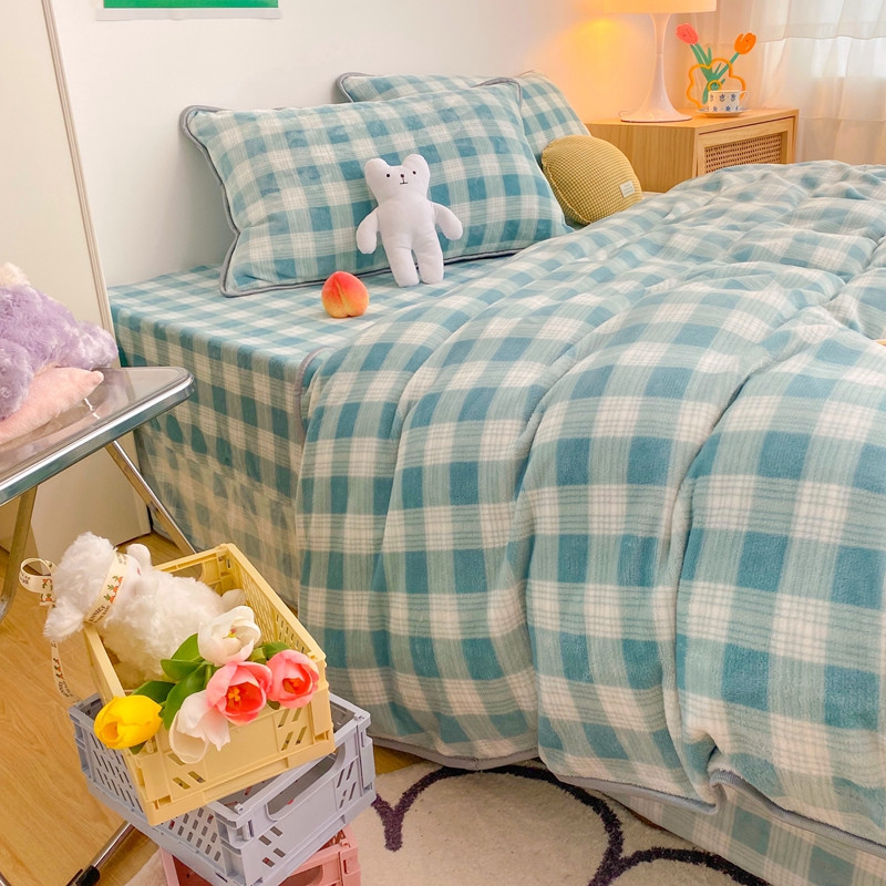 (总)顾里家纺 2024新款ins奶萌格子狗狗毛巾绣牛奶绒四件套,粉格小狗,黄格小狗,咖格小狗,蓝格小狗,绿格小狗