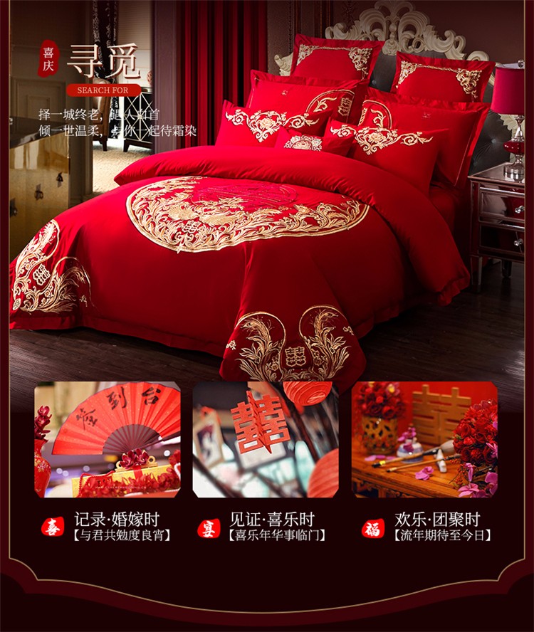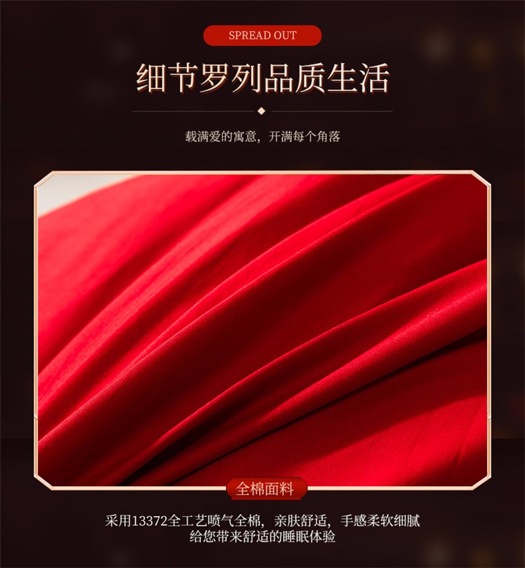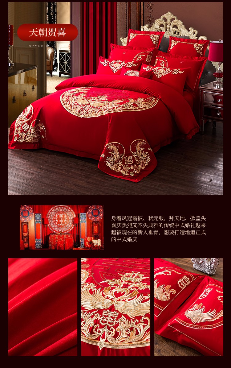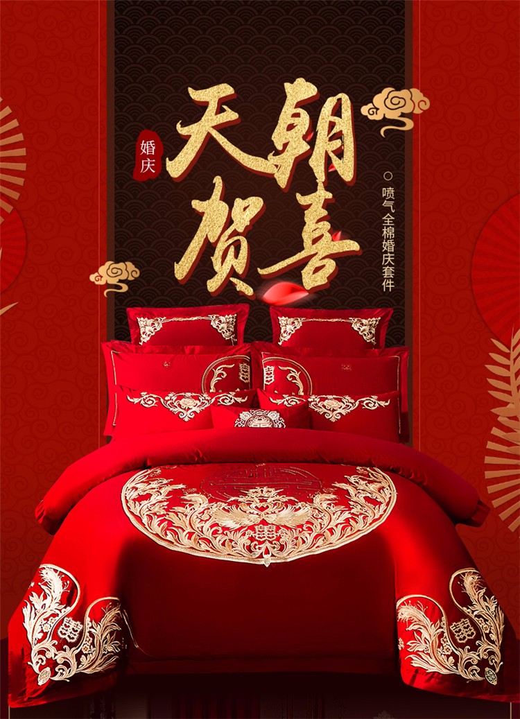 当前位置: 91家纺网 > 商品网购 > 床品套件 > 四件套 > 全棉活性四件套 > 千禧 2020新款喷气全棉婚庆四件套 天朝贺喜