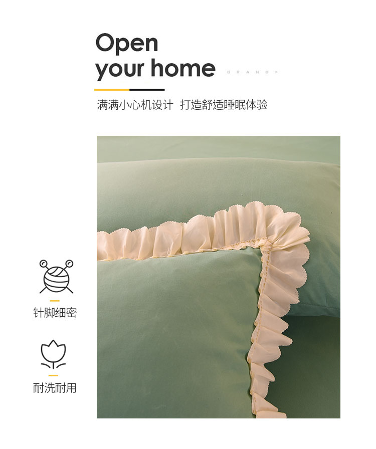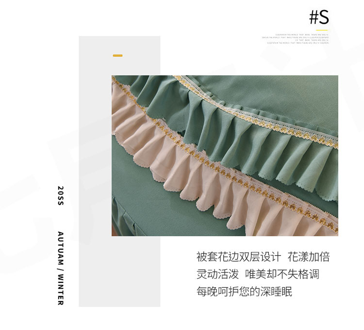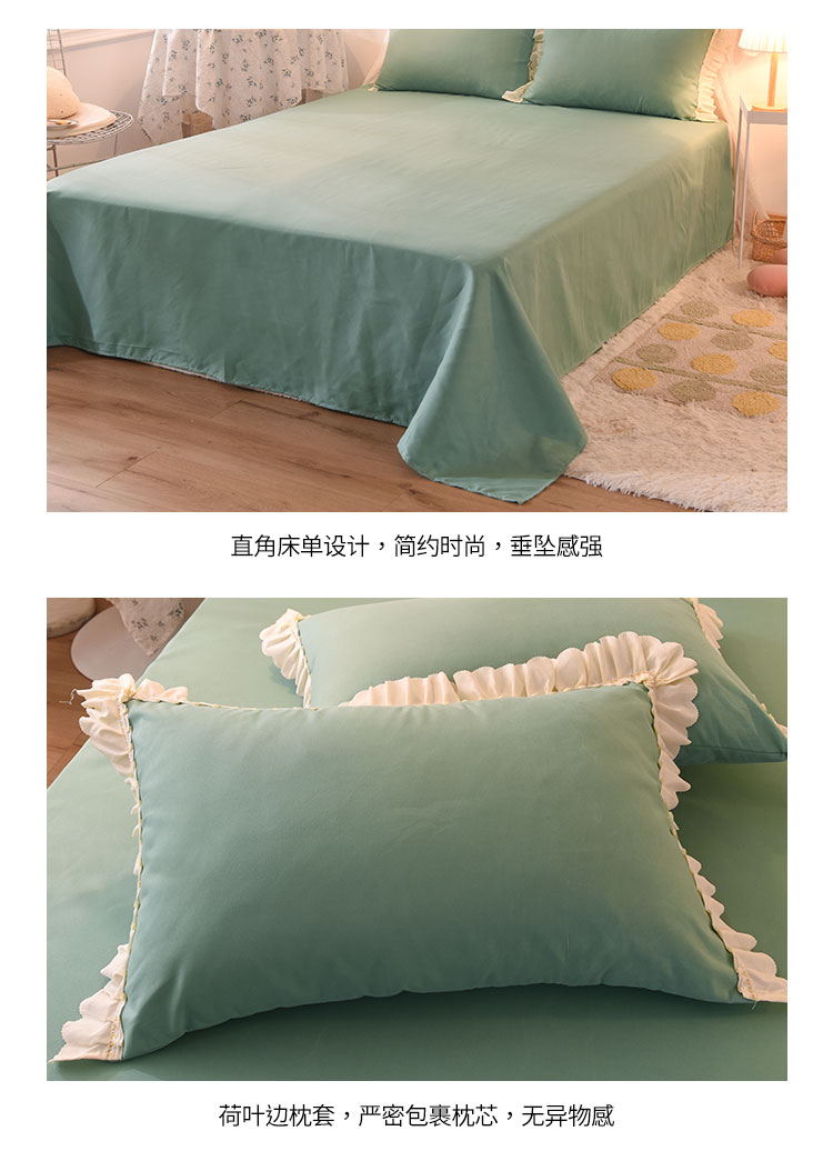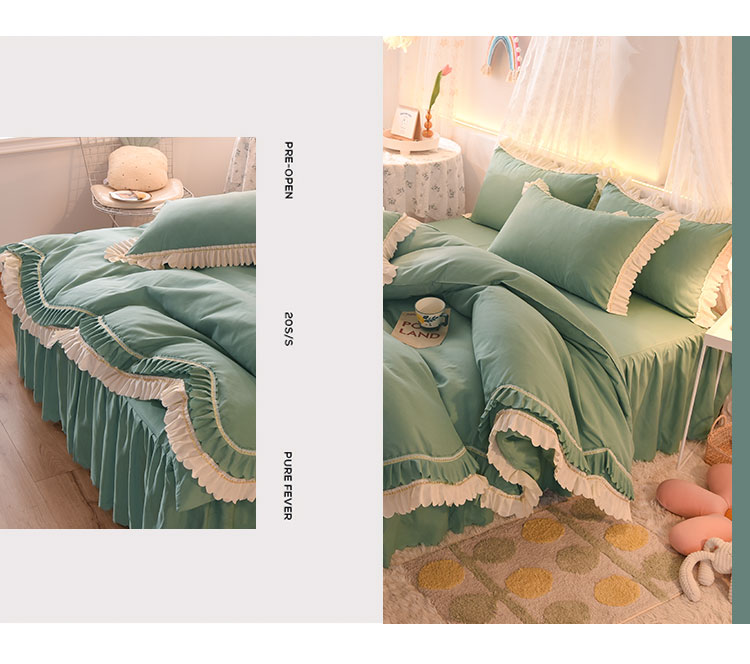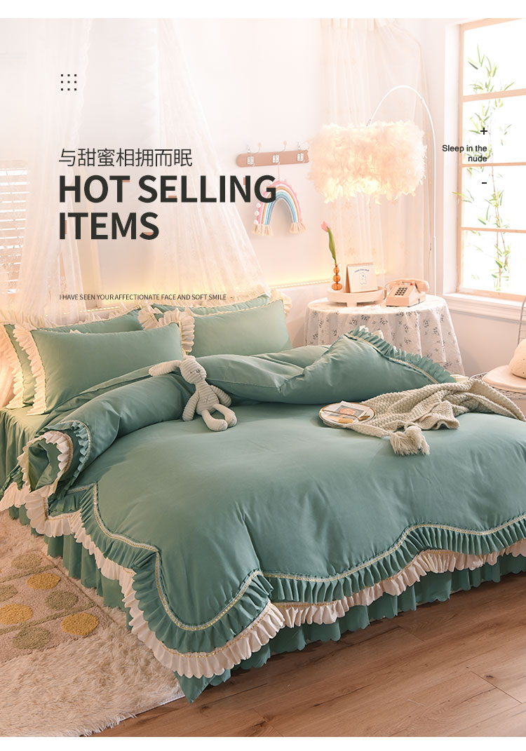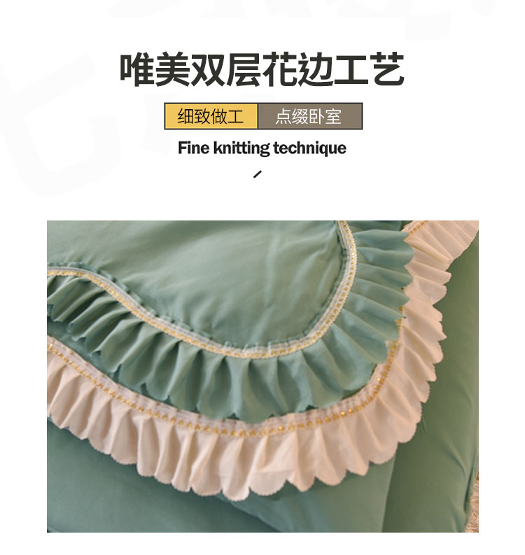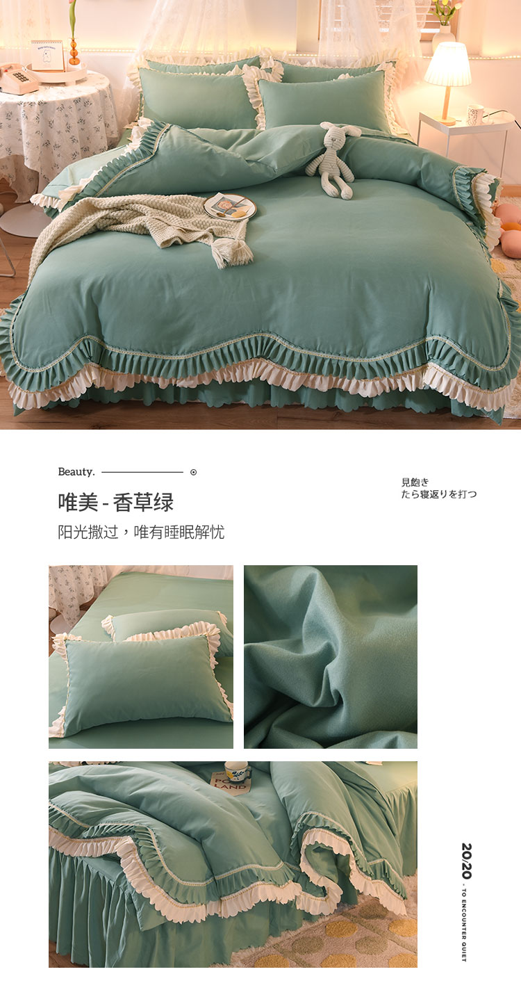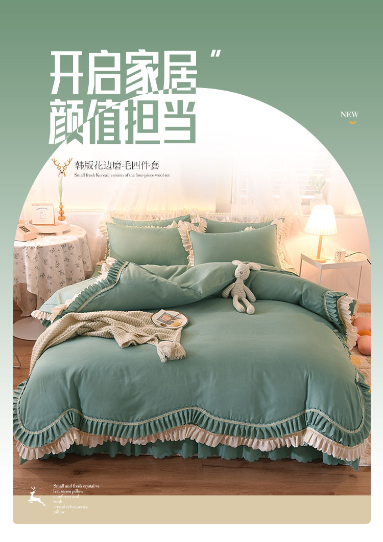 商品名称:芭比蔓 2024新款韩版磨毛花边四件套 唯美-香草绿