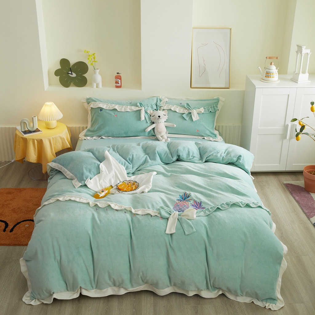 (总】眠屿 2020新款牛奶绒绣花菠萝系列四件套