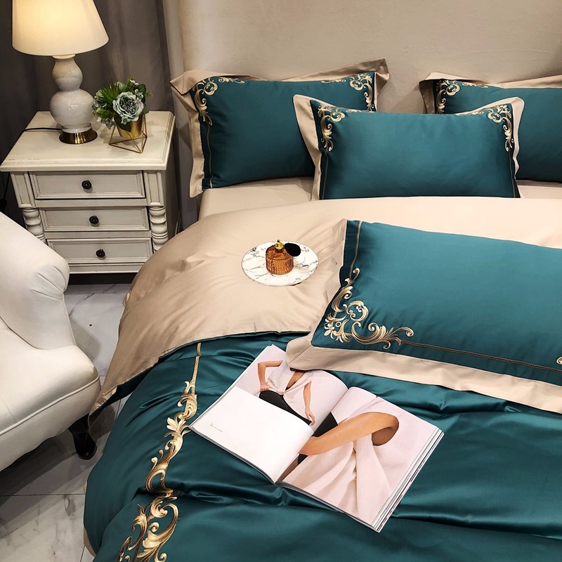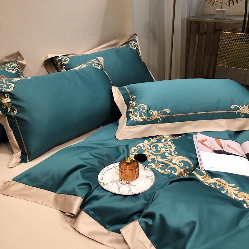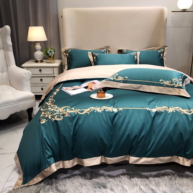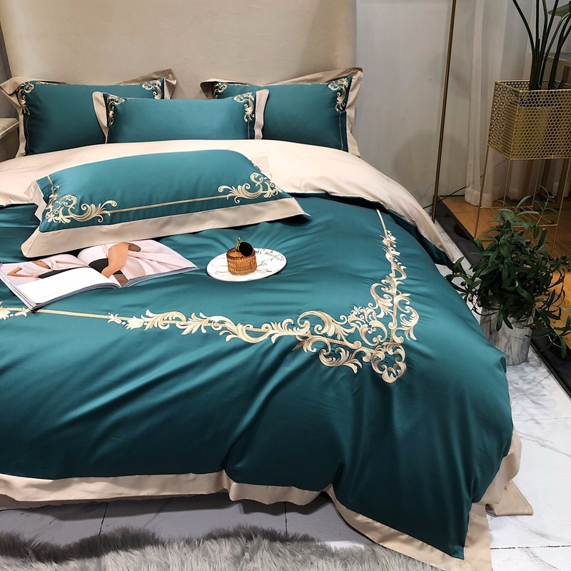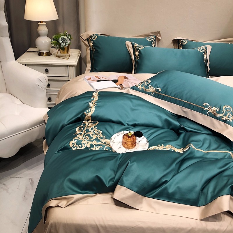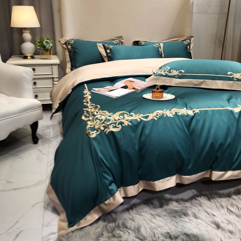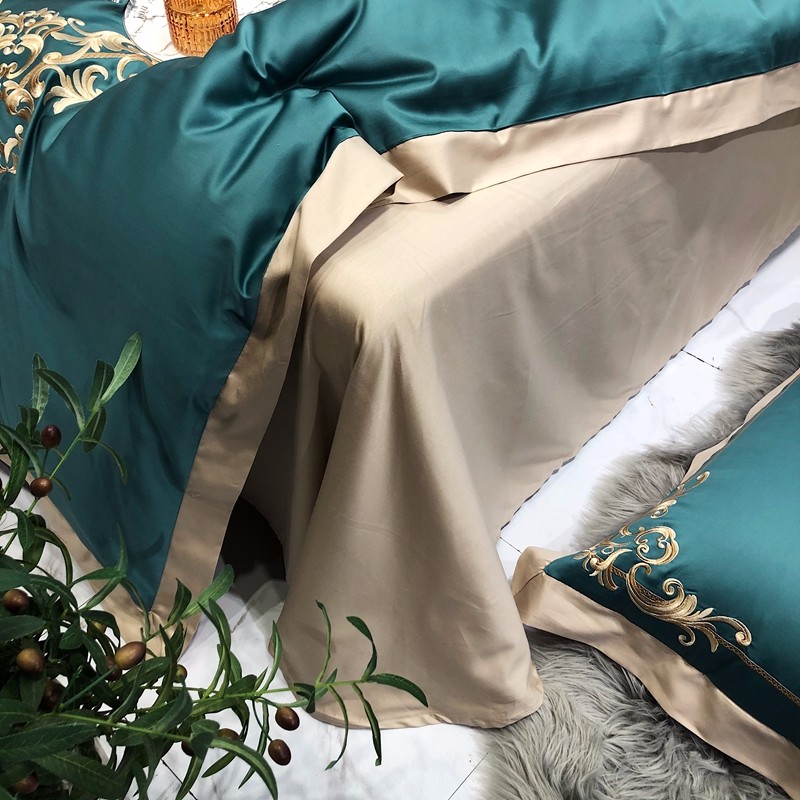 馨蕊家居 2021新品春夏高定100支格调四件套翡翠绿