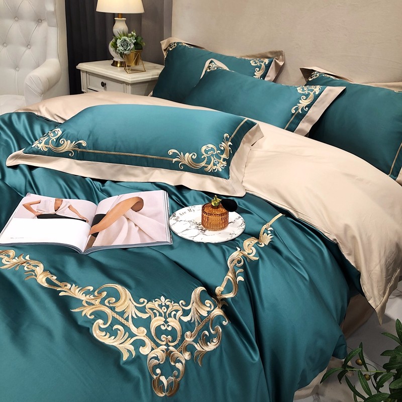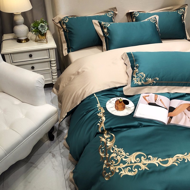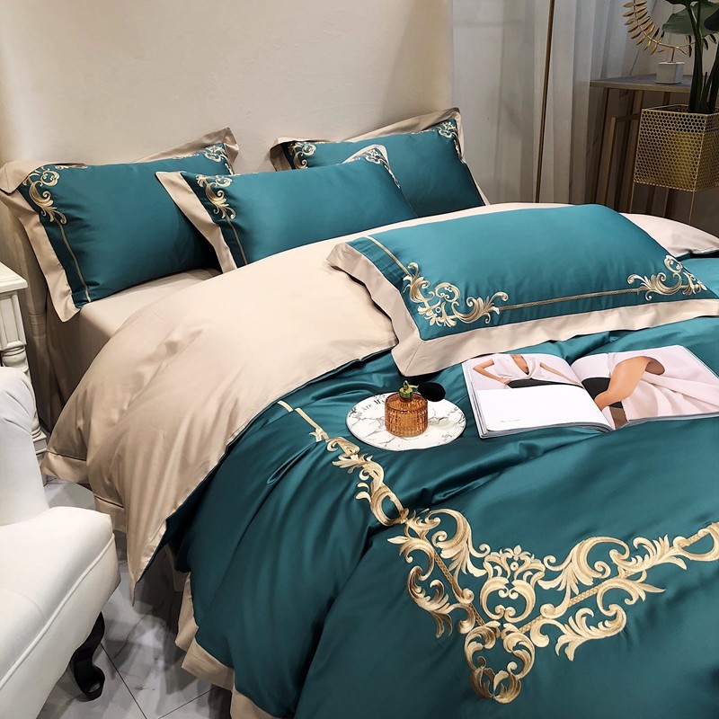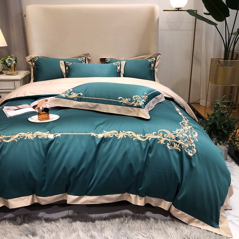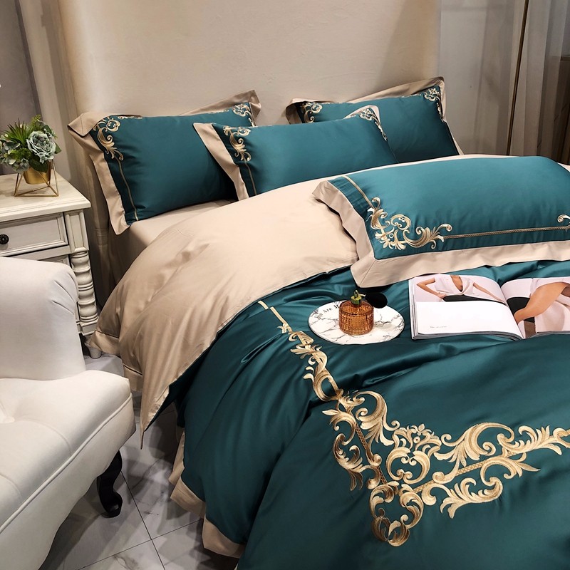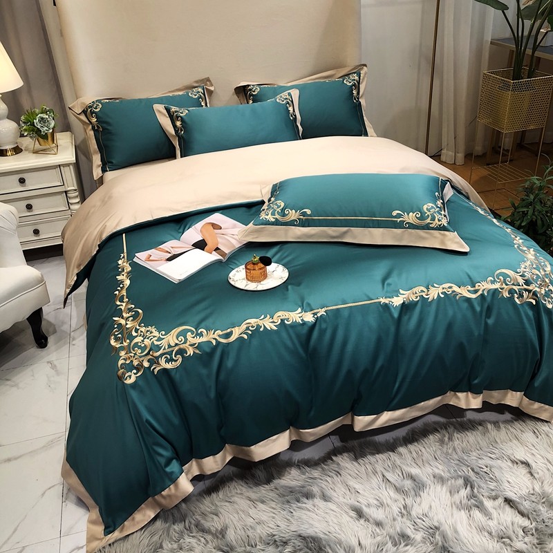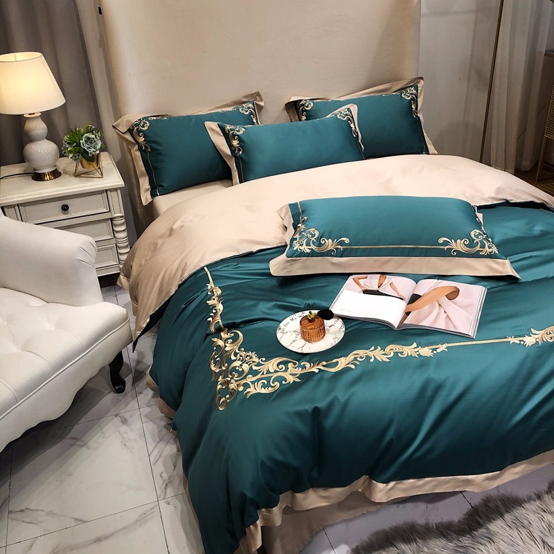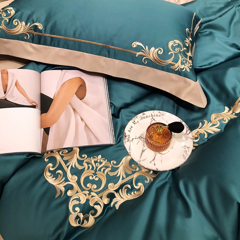 馨蕊家居 2021新品春夏高定100支格调四件套翡翠绿