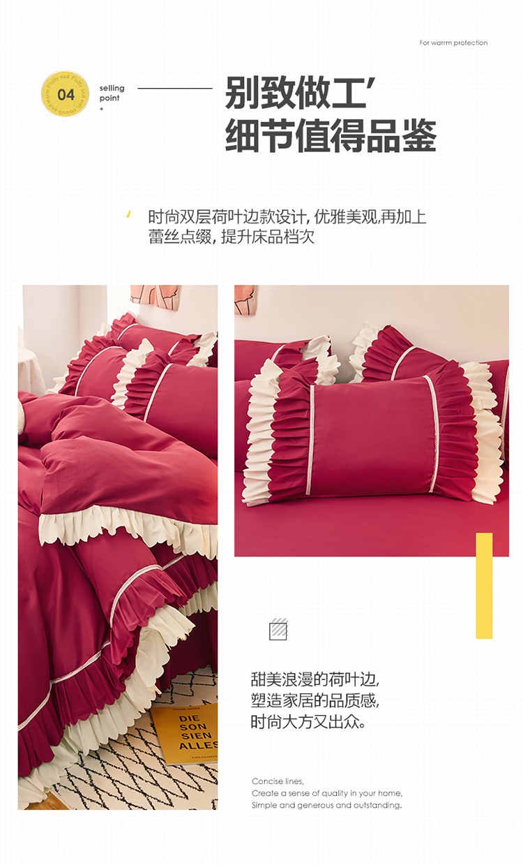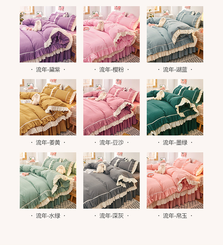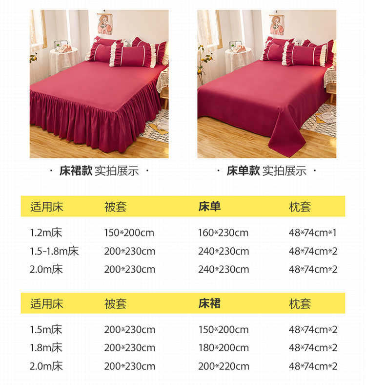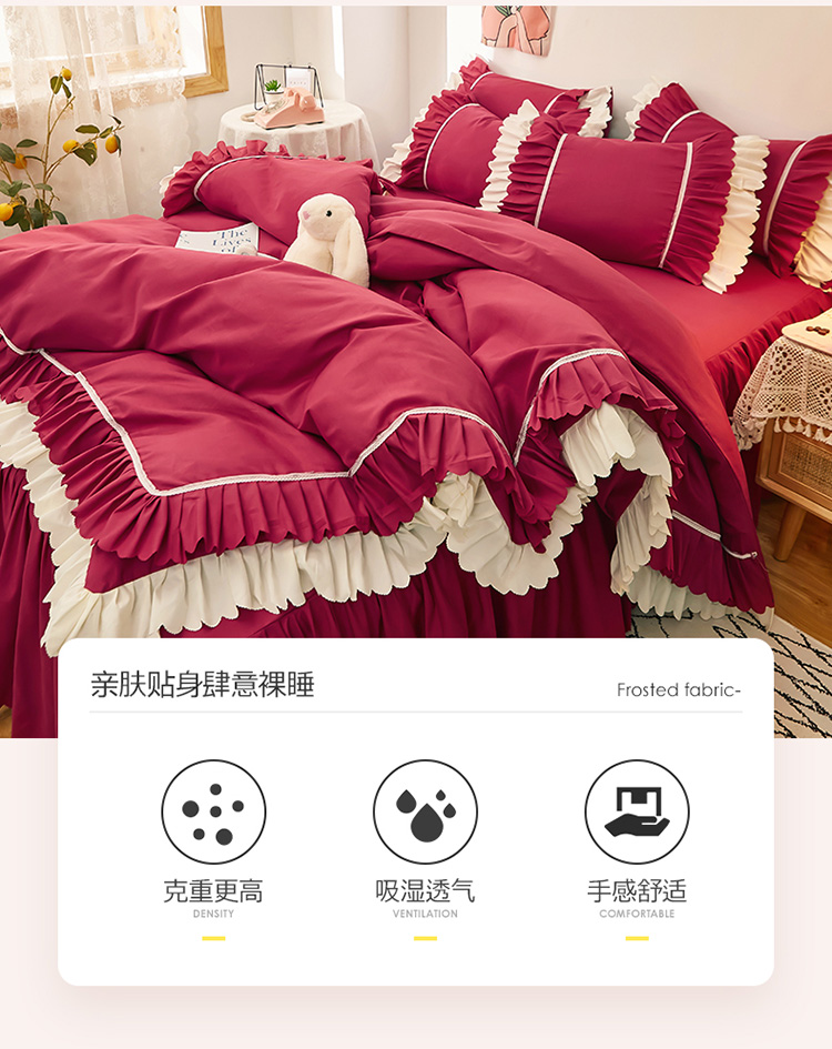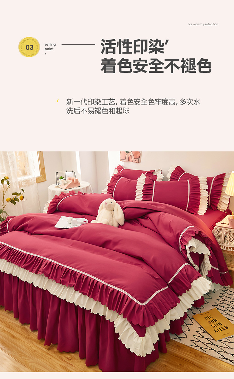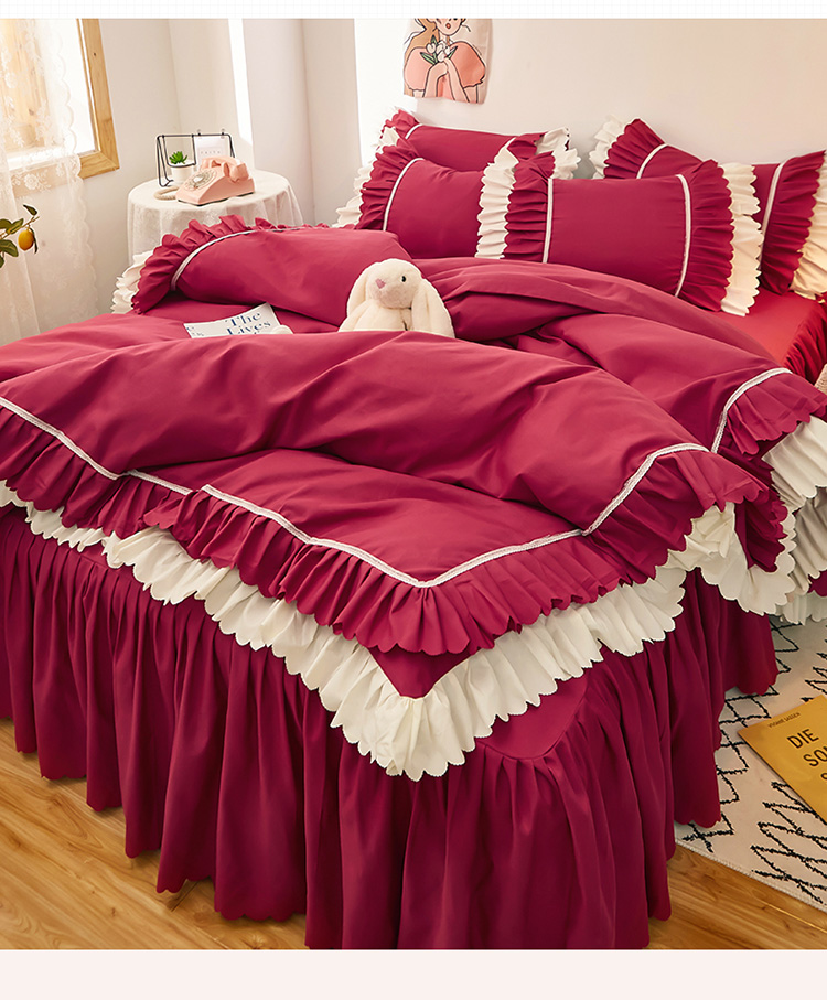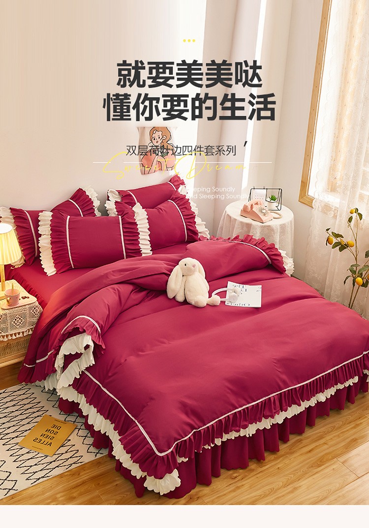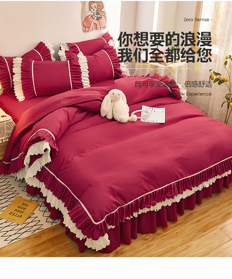 当前位置: 91家纺网 > 商品网购 > 床品套件 > 四件套 > 普通磨毛四件套 > 2025新款莉莉安流年系列床裙三件套四件套韩版四件套流年酒红