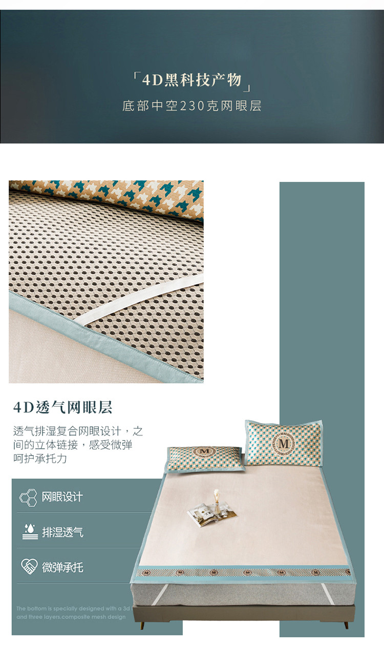 商品名称:小芽家居 2024新款千鸟格冰丝凉席三件套 千鸟格-银灰