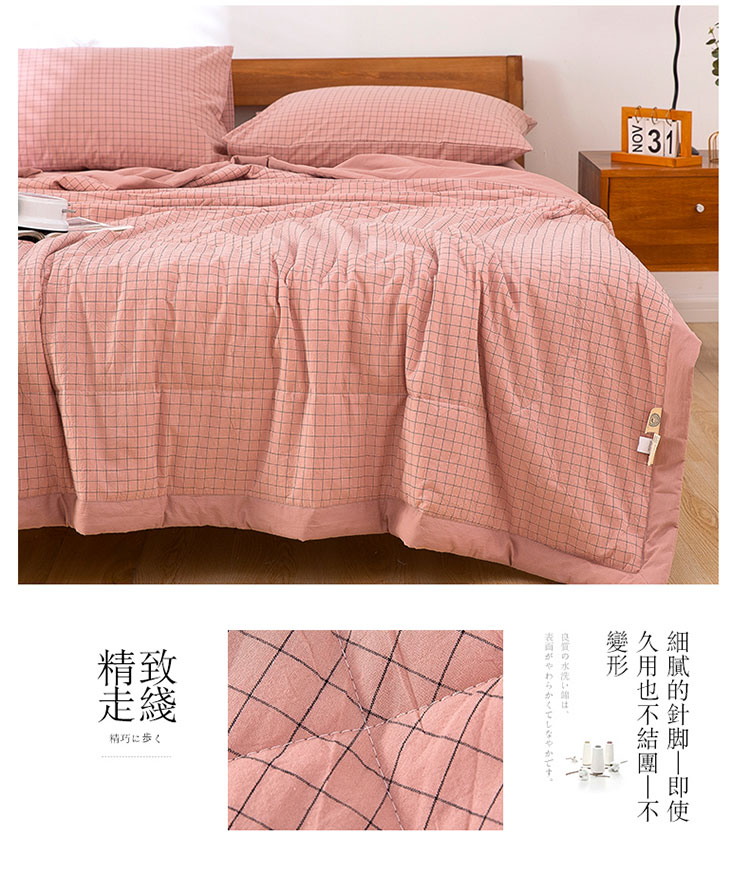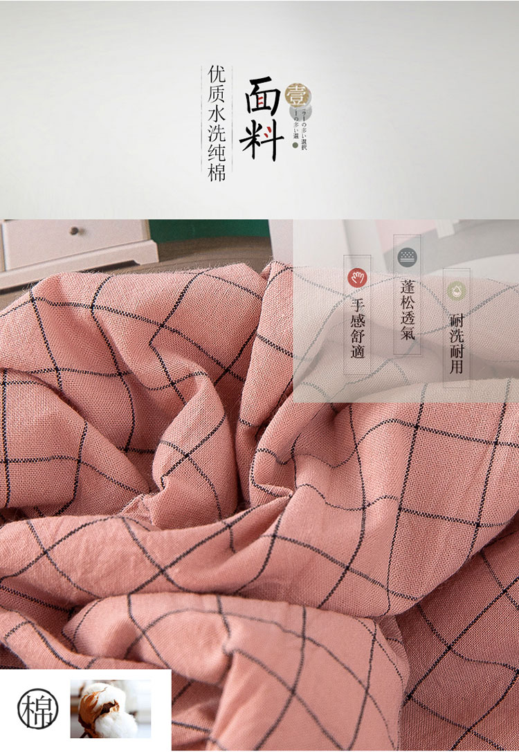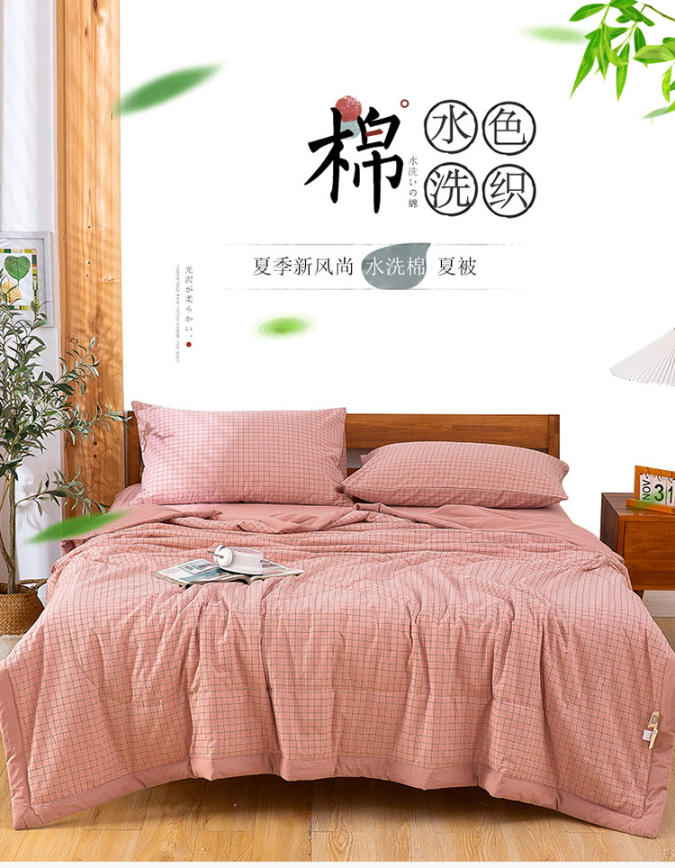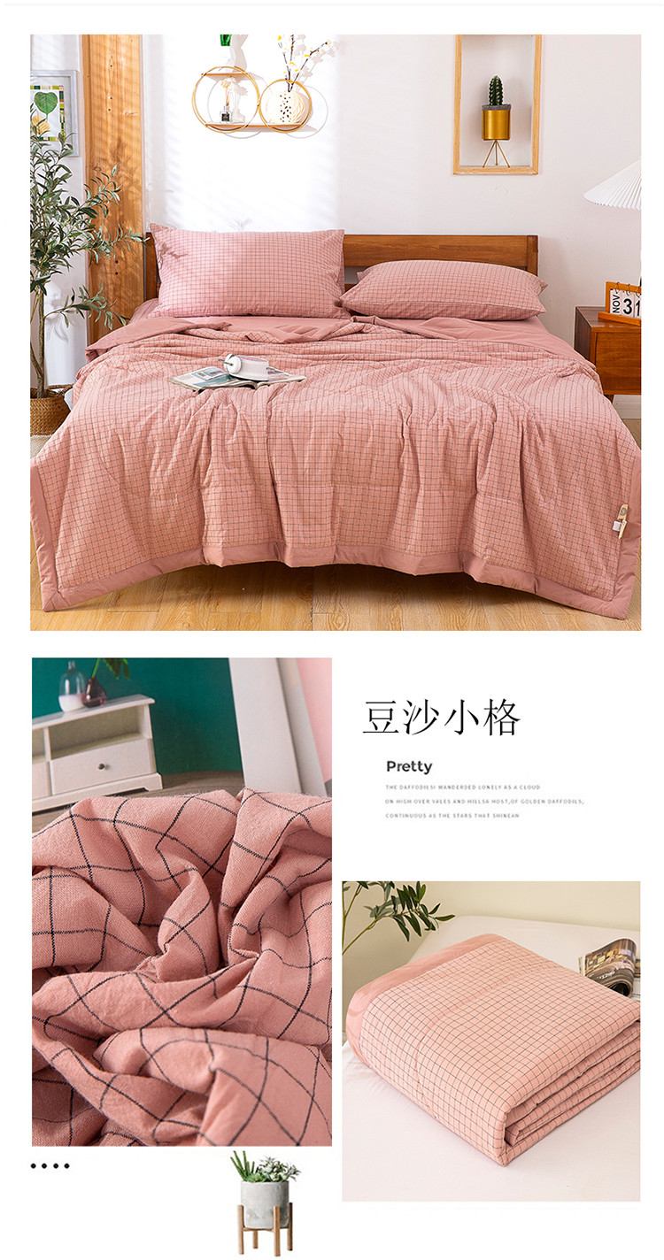 天瑜家纺 2023新款全棉色织水洗棉夏被 豆沙小格