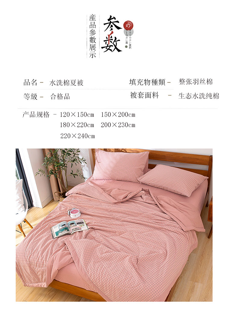 商品名称:天瑜家纺 2023新款全棉色织水洗棉夏被 豆沙小格
