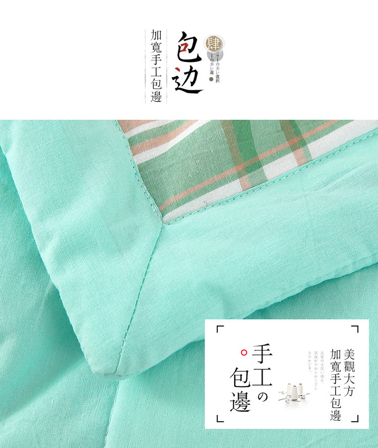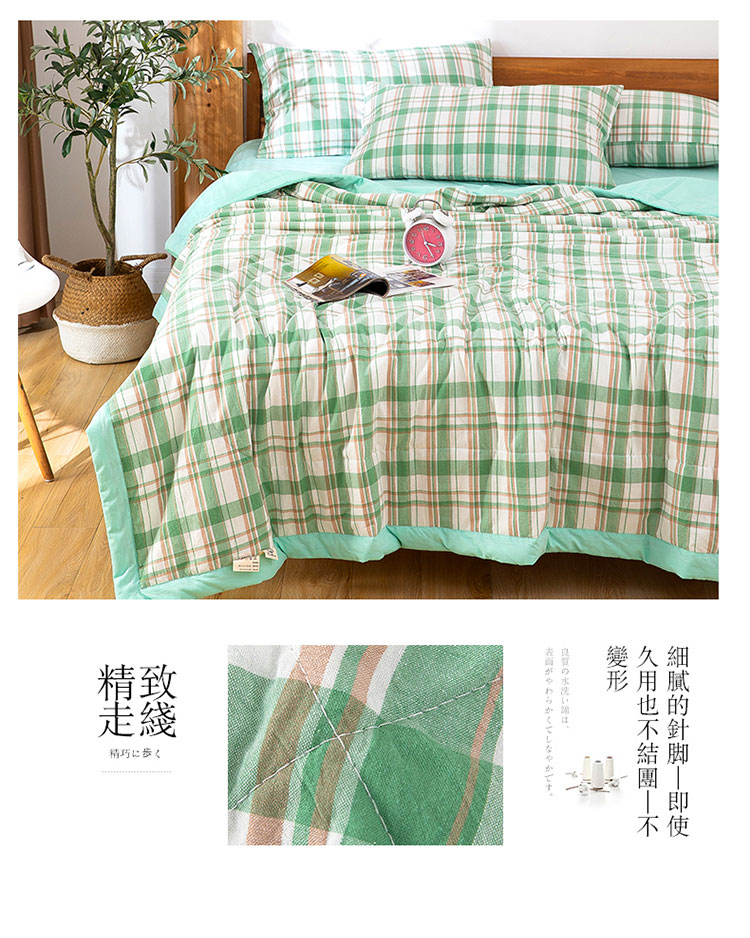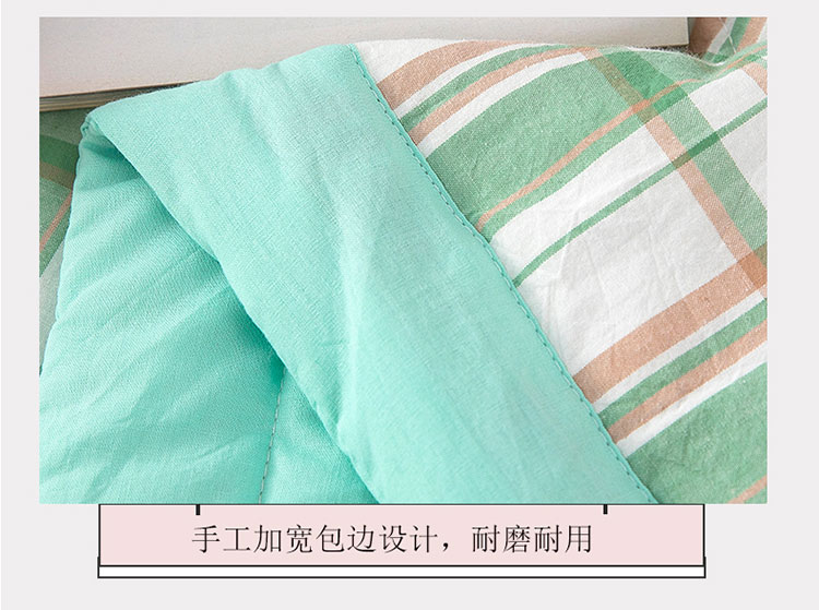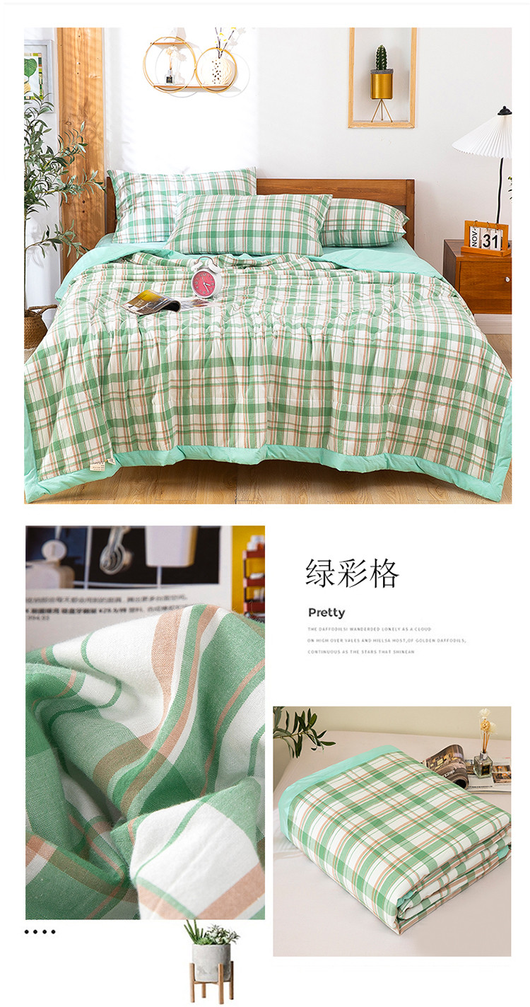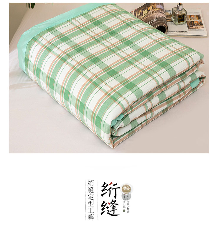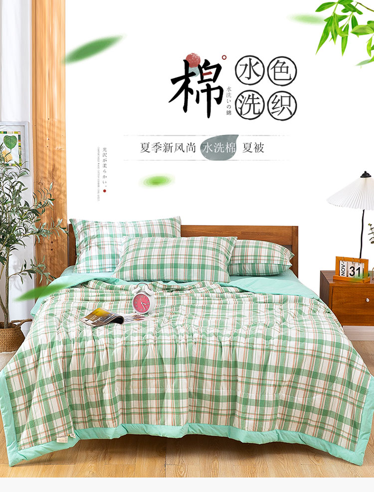 天瑜家纺 2023新款全棉色织水洗棉夏被 绿彩格