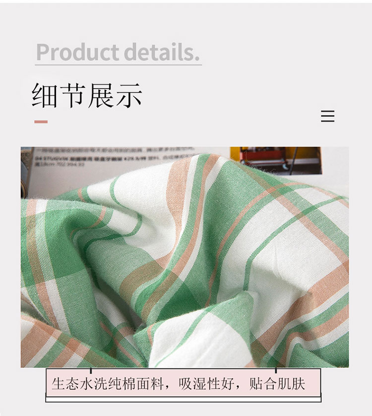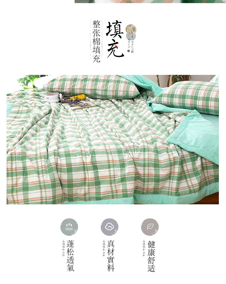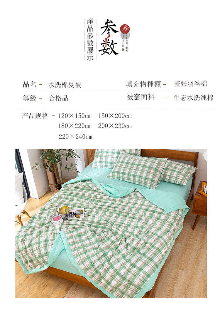 商品名称:天瑜家纺 2023新款全棉色织水洗棉夏被 绿彩格
