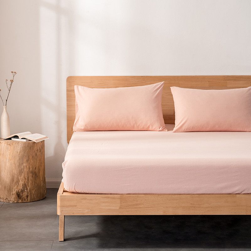 久典 2022新款色织全棉水洗棉单品床笠 浅粉