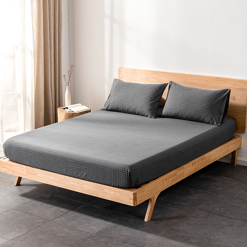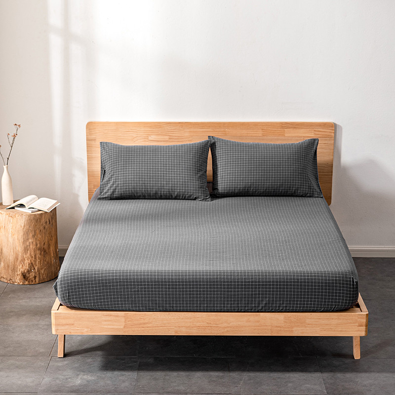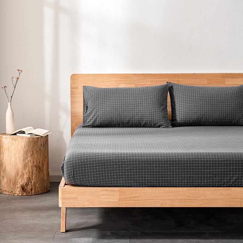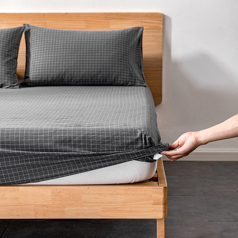 久典 2022新款色织全棉水洗棉单品床笠 小灰格
