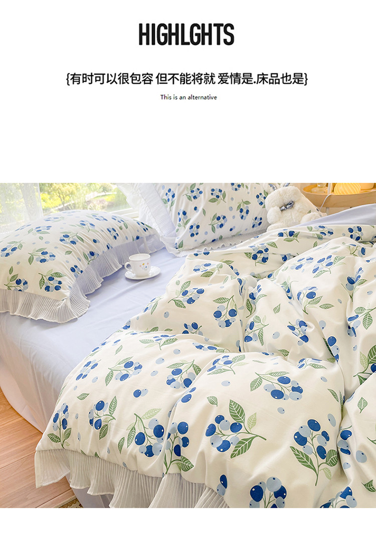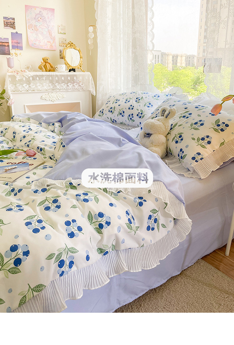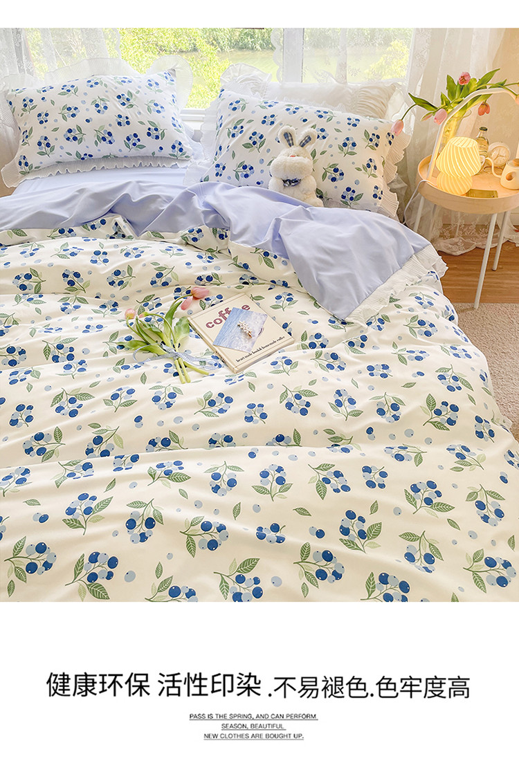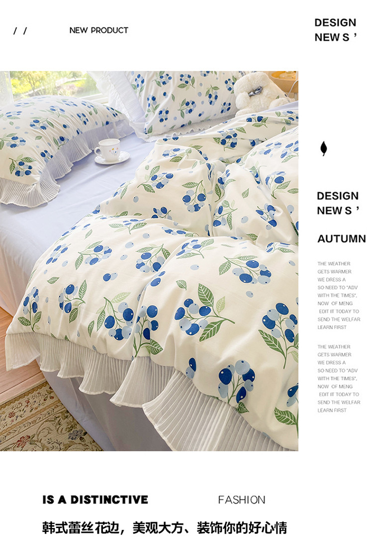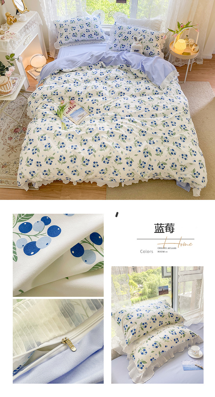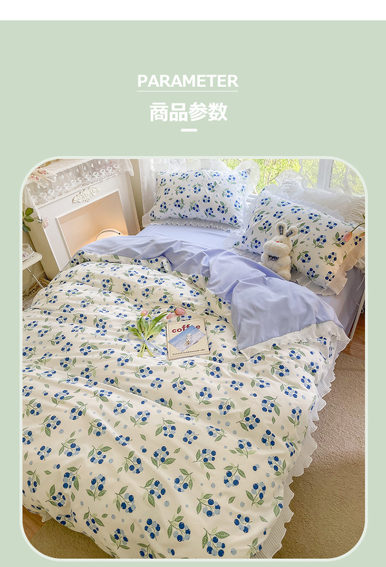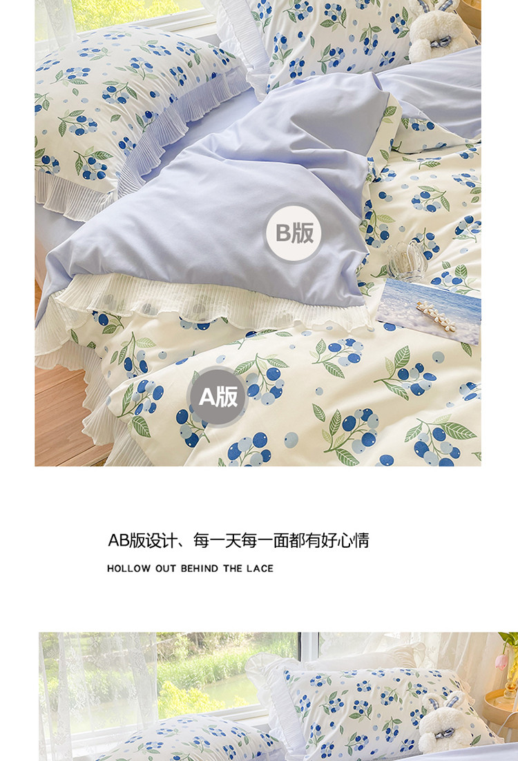 商品名称:琪格格纺织 2022新款水洗棉蕾丝边四件套 蓝莓