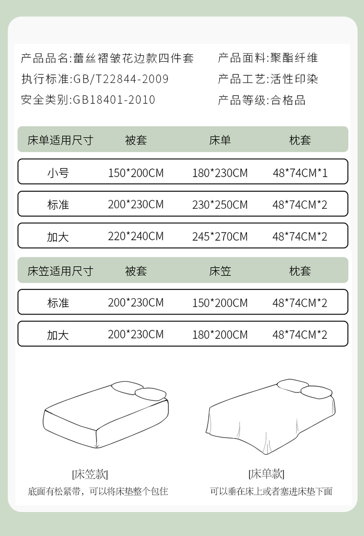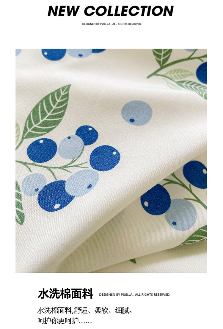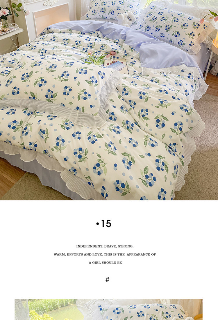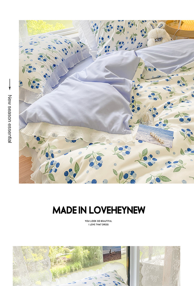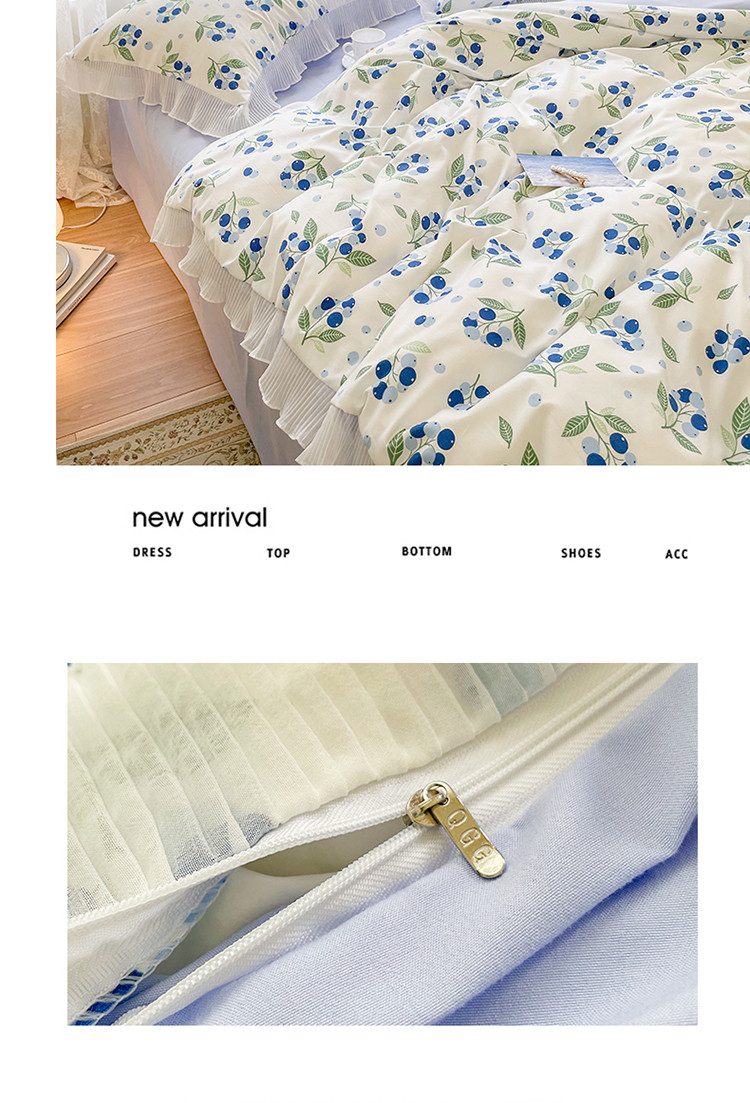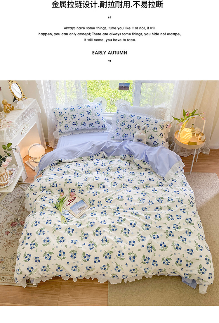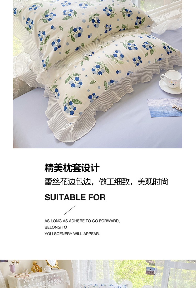 商品名称:琪格格纺织 2022新款水洗棉蕾丝边四件套 蓝莓