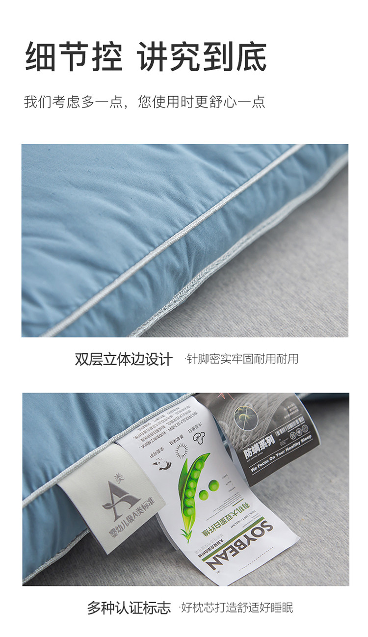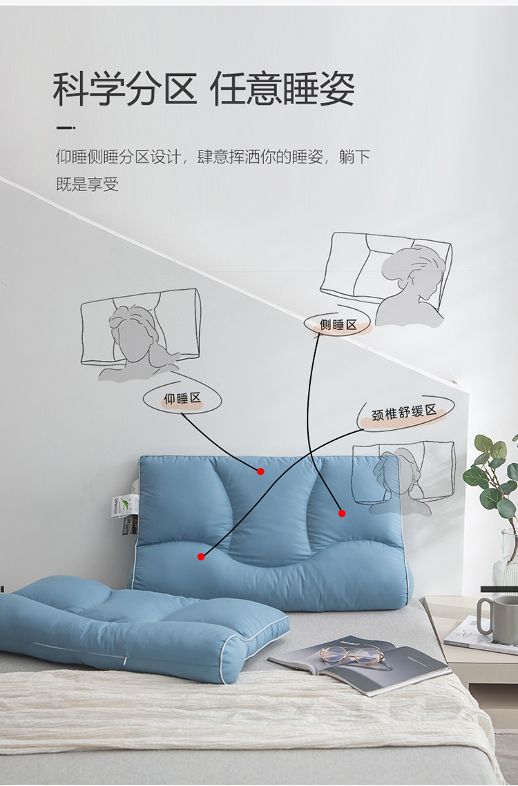 当前位置: 91家纺网 > 商品网购 > 枕头/枕芯/保健枕/颈椎枕 > 普通枕芯 > 头等舱 2022新款全棉A类四区两用大豆抗菌防螨护颈枕芯 蓝