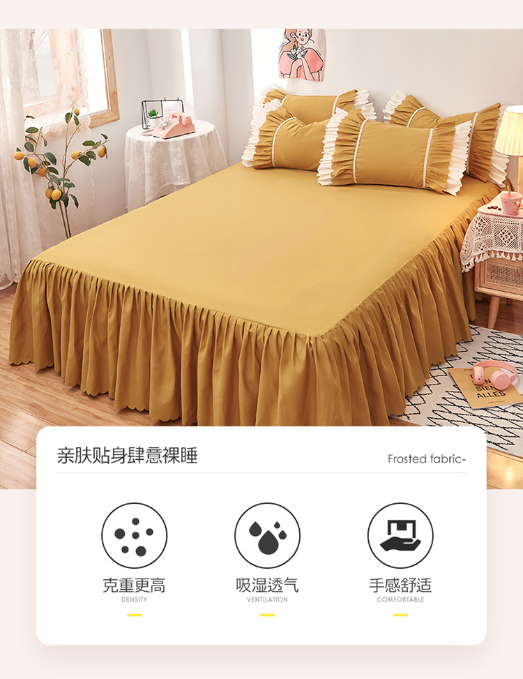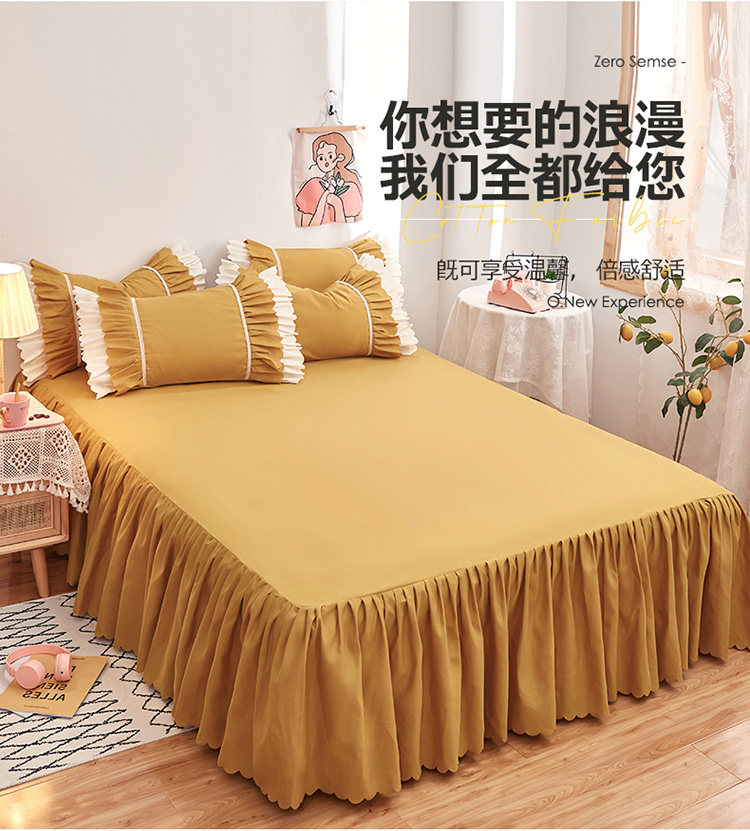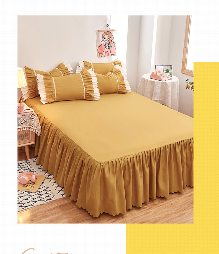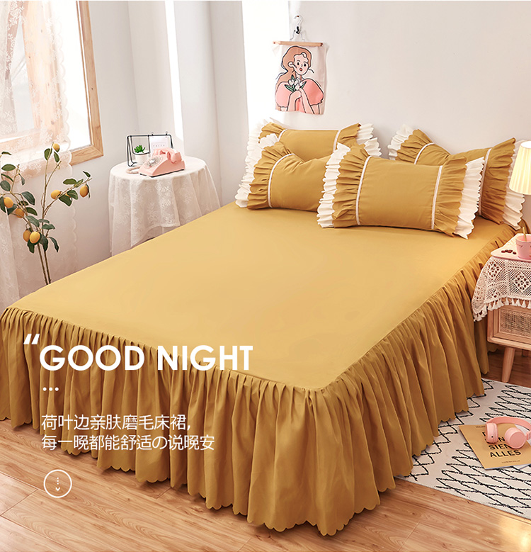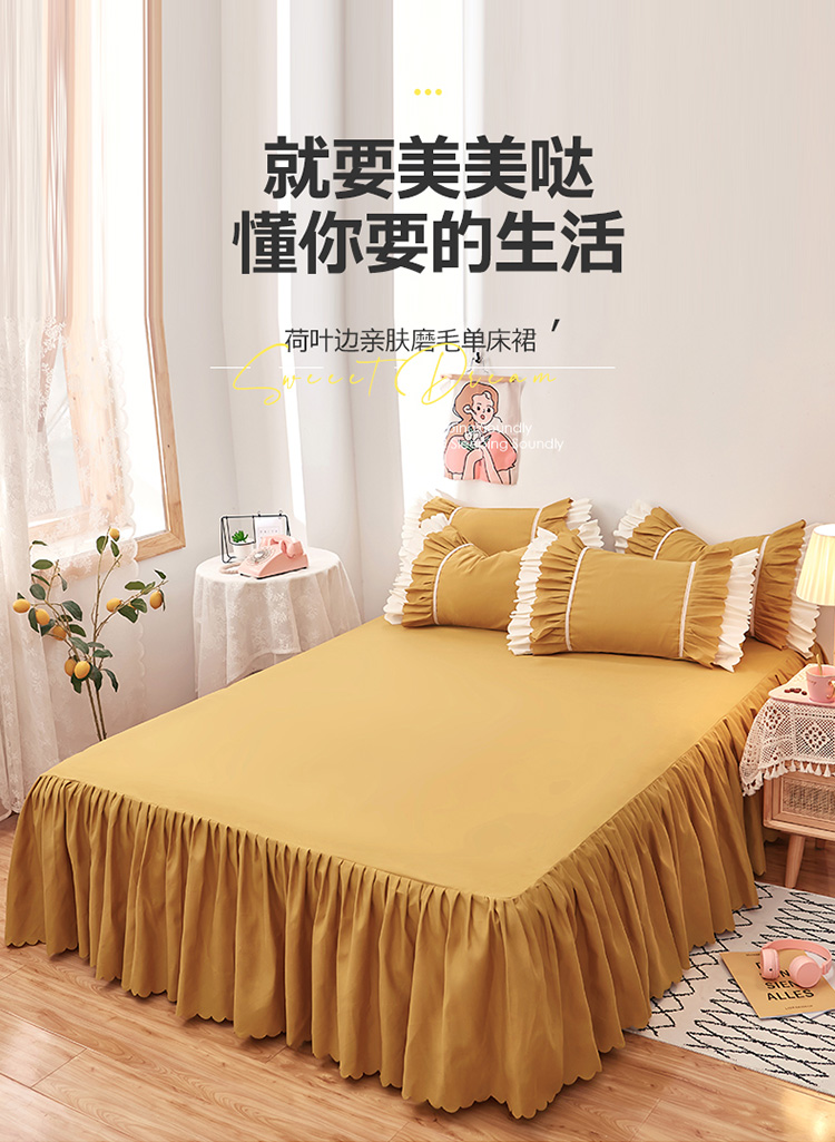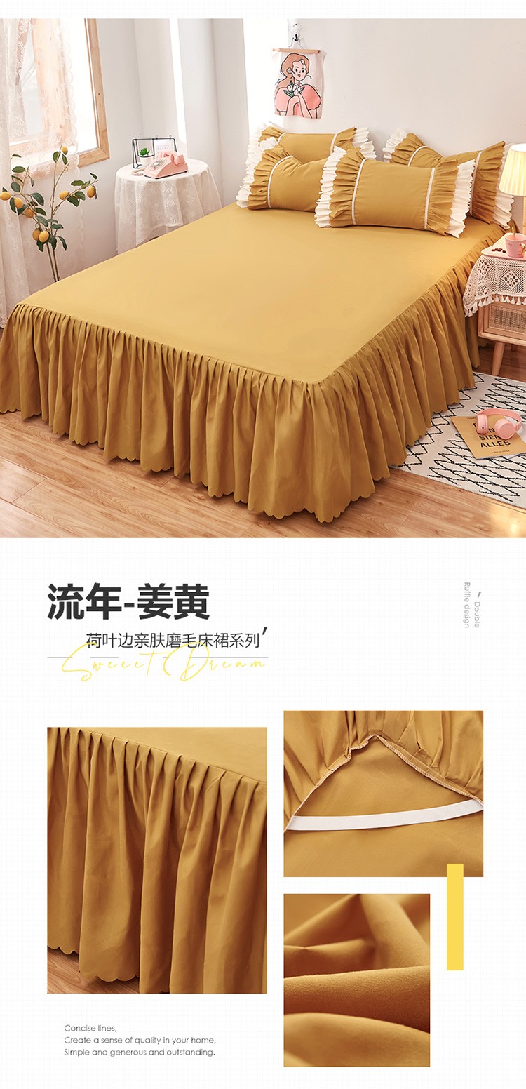 商品名称:莉莉安 荷叶边亲肤磨毛单床裙-流年系列 流年-姜黄