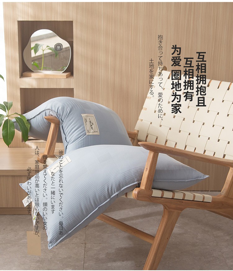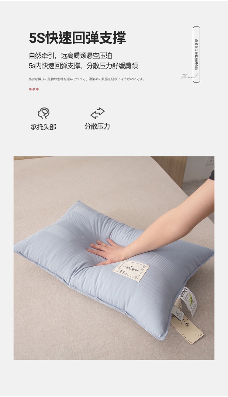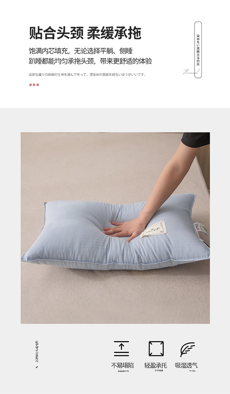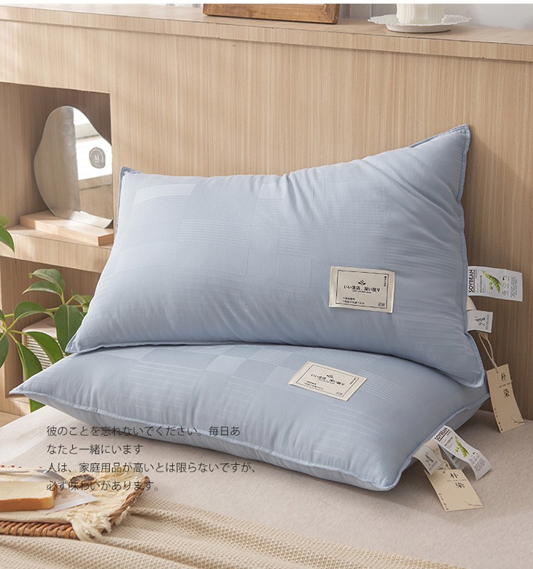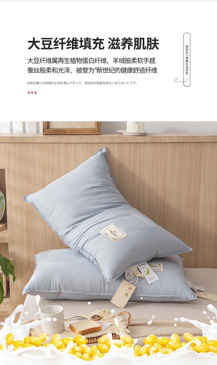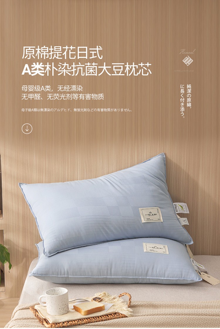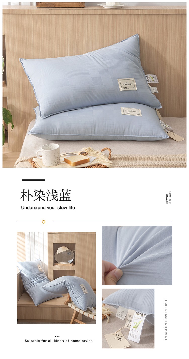 头等舱 2022新款原棉提花日式A类朴染抗菌大豆枕芯朴染浅蓝