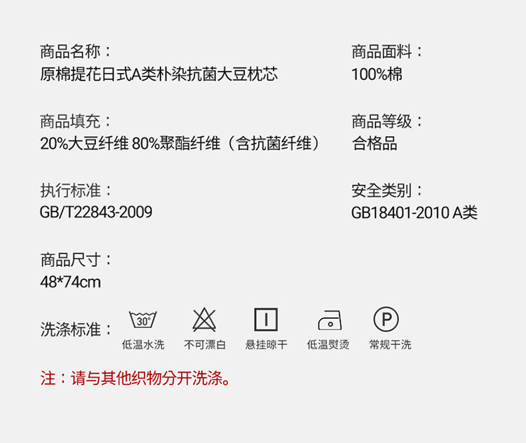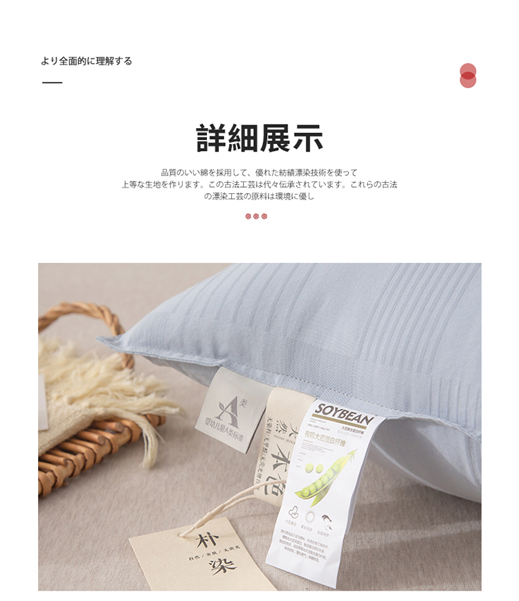 商品名称:头等舱 2022新款原棉提花日式A类朴染抗菌大豆枕芯朴染浅蓝