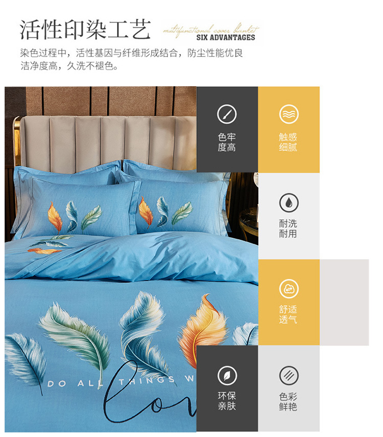 (总)雲归梦 2021新款全棉生态磨毛刺绣四件套,慕思-橙色,慕思-粉紫,慕思-灰,慕思-米黄,慕思-青绿,慕思-天蓝