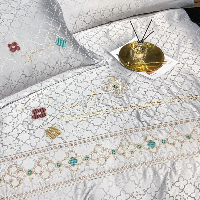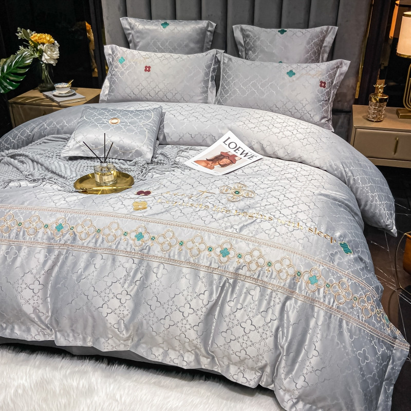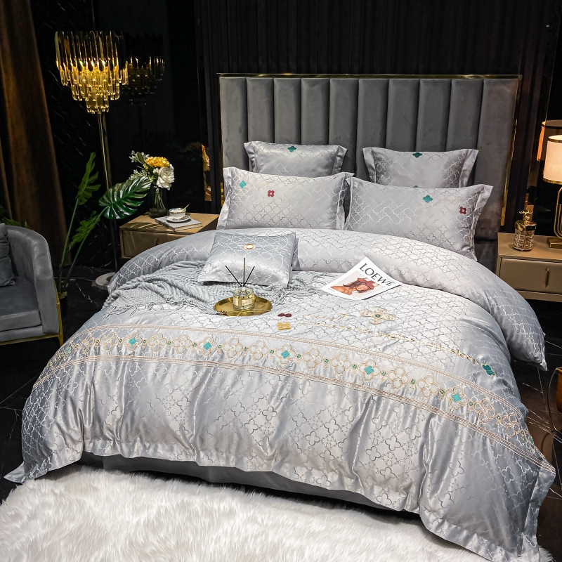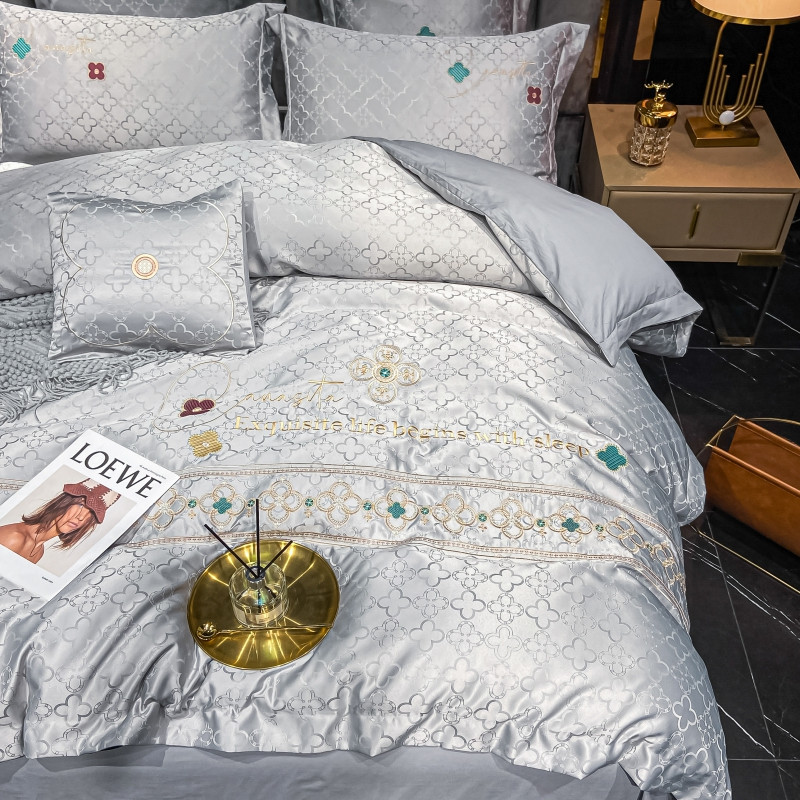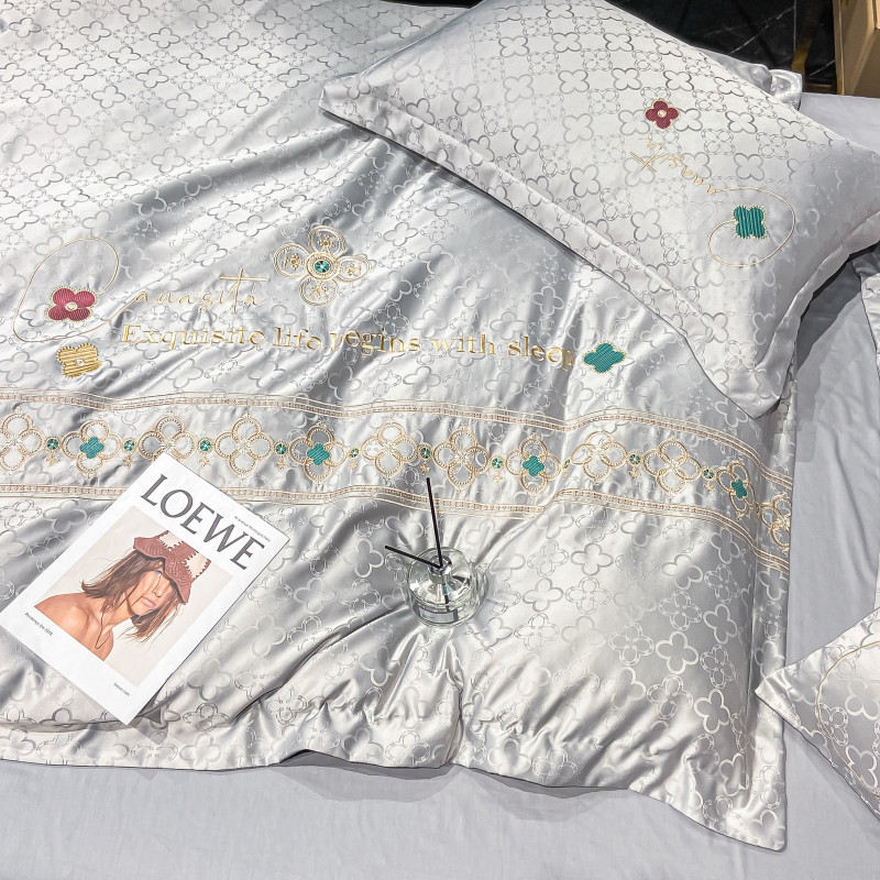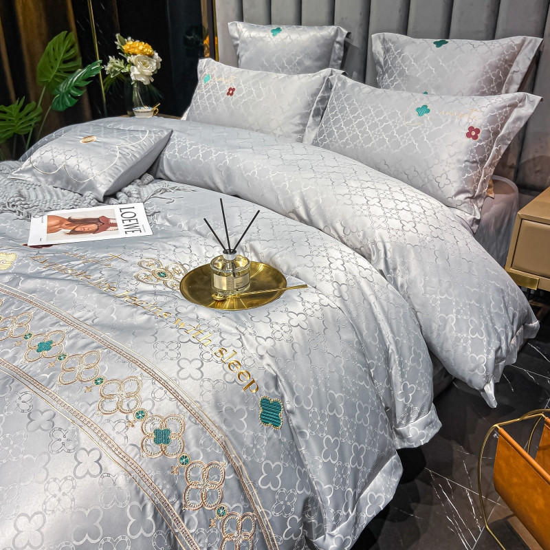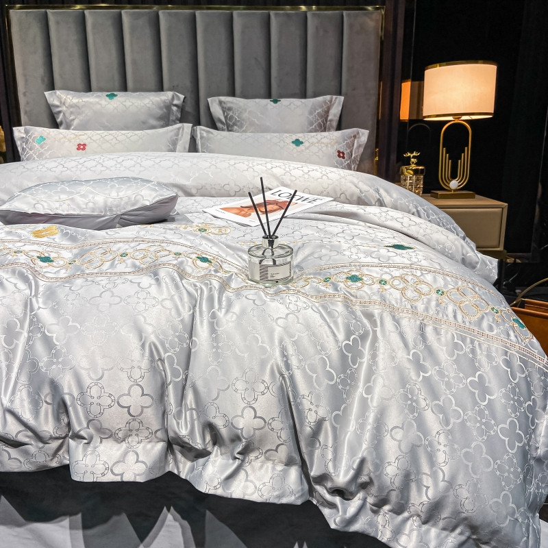 博纳 2021新款水洗真丝提花纯棉四件套系列-四叶草 炫彩银