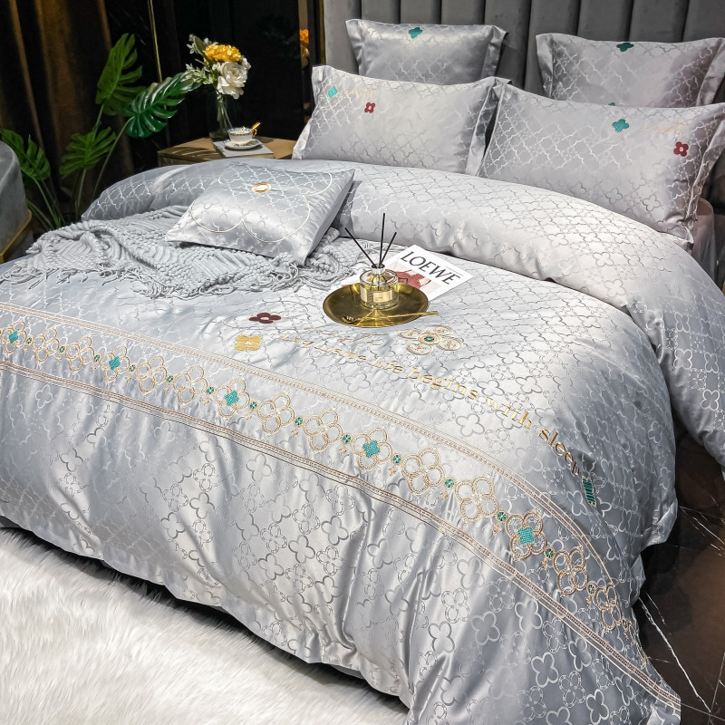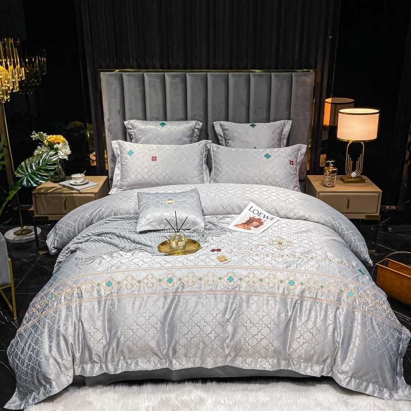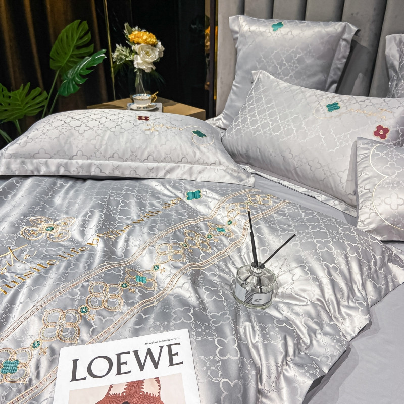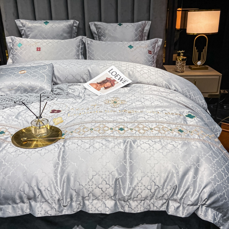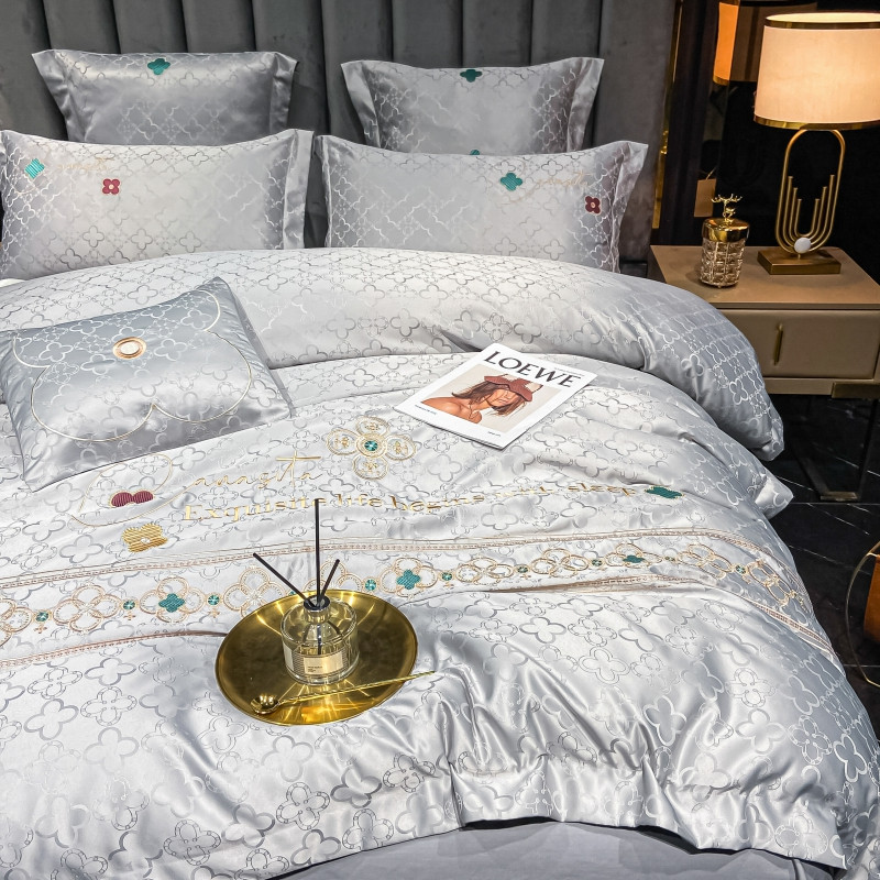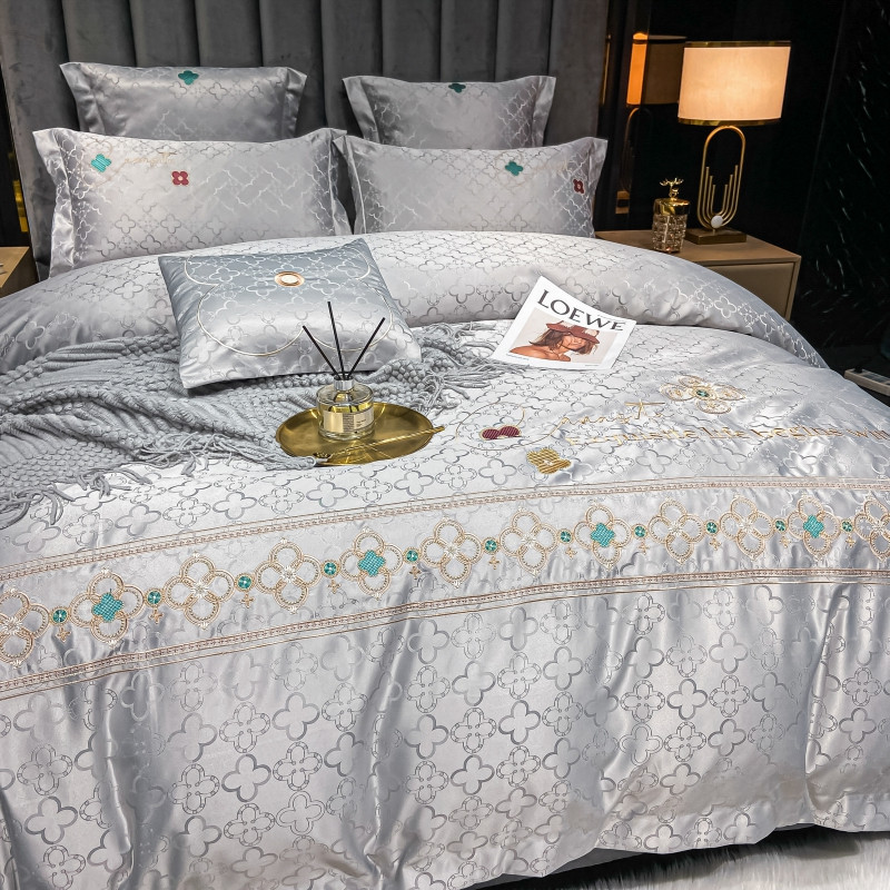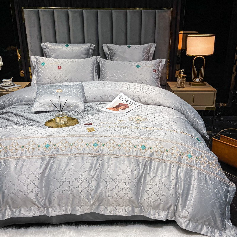 博纳 2021新款水洗真丝提花纯棉四件套系列-四叶草 炫彩银