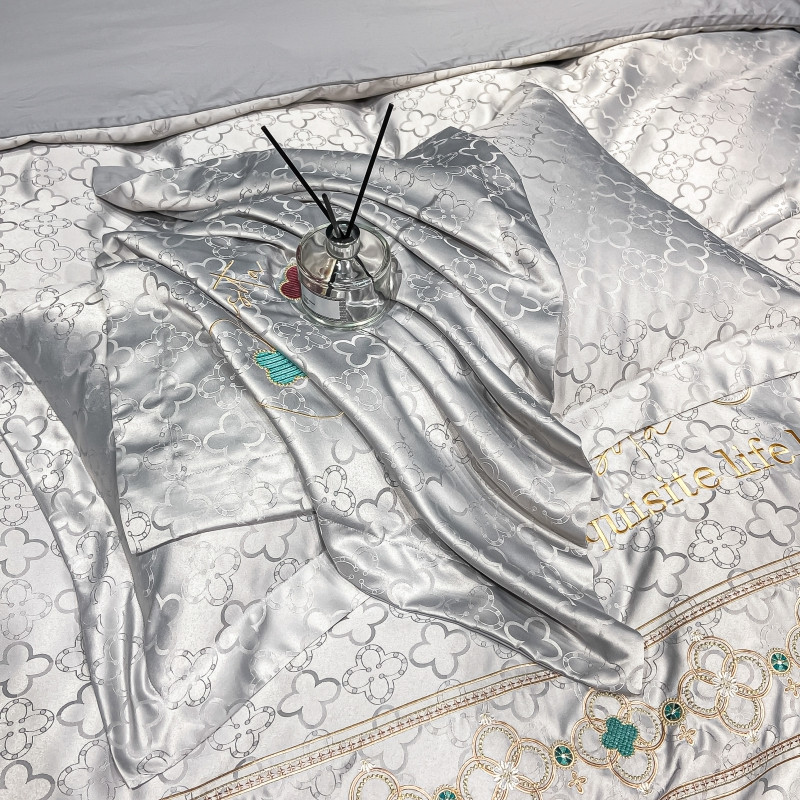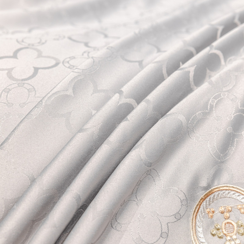 商品名称:博纳 2021新款水洗真丝提花纯棉四件套系列-四叶草 炫彩银