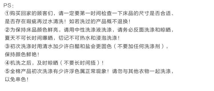 3、通州区市场监督局友情提醒,近期涉及到床上用品不褪色不掉毛不缩水的投诉和以世界知名品牌图案为面料的床品举报较多。请各商家自检自查,对照整改或进行下架处理。