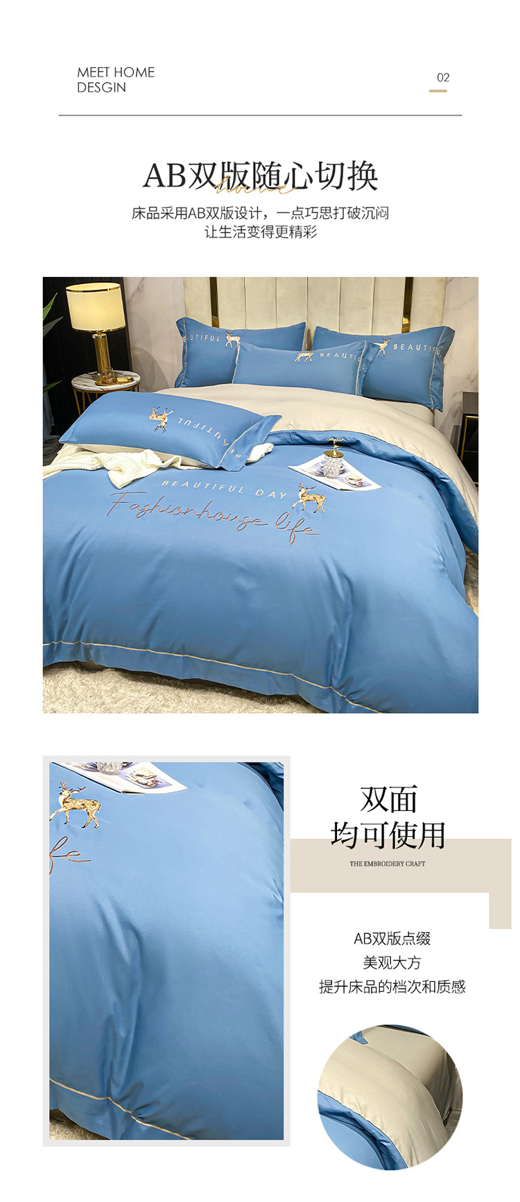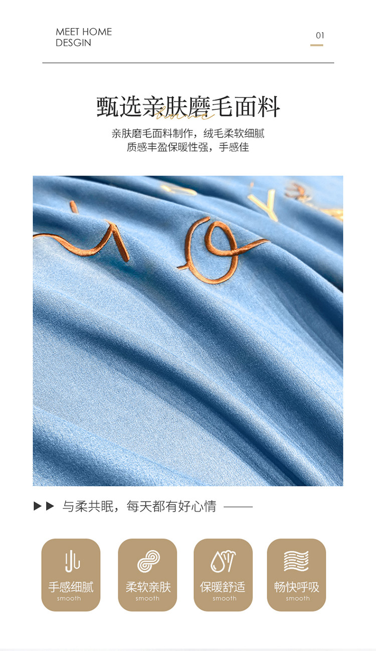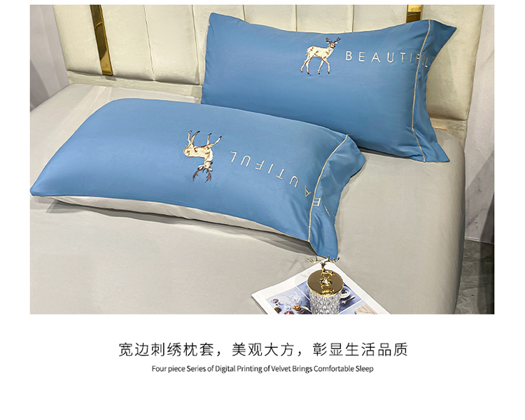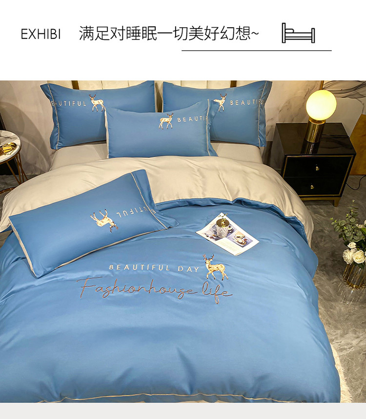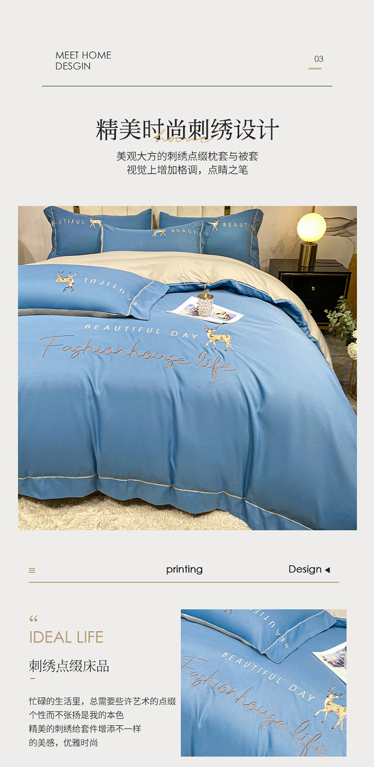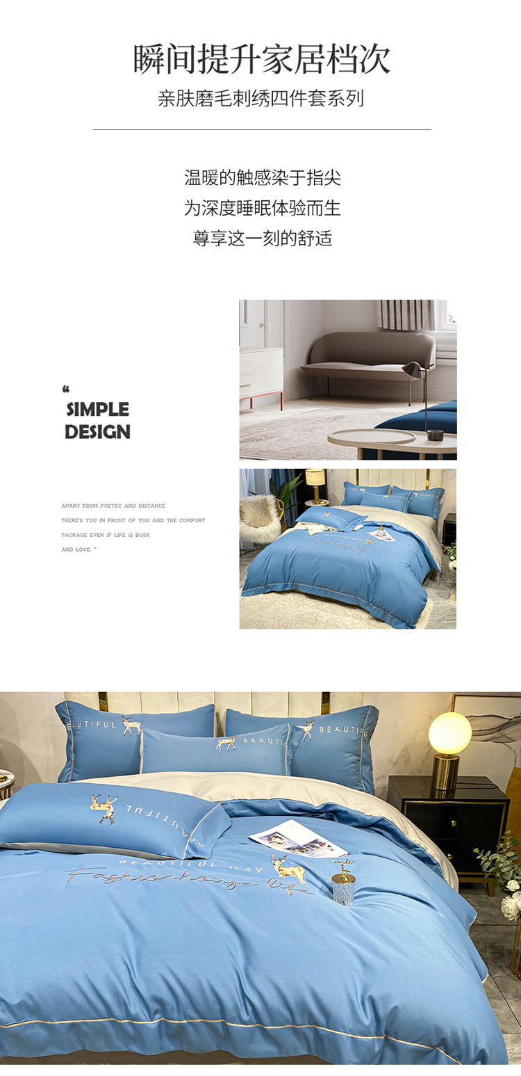 商品名称:金麦 2021亲肤刺绣磨毛四件套一鹿有你系列一鹿有你-宾利蓝
