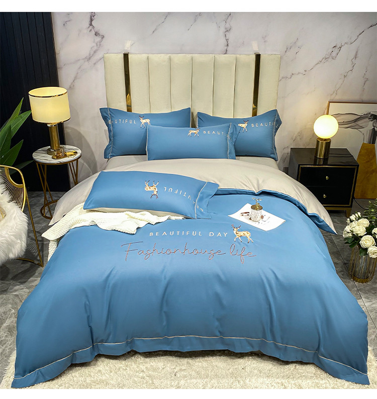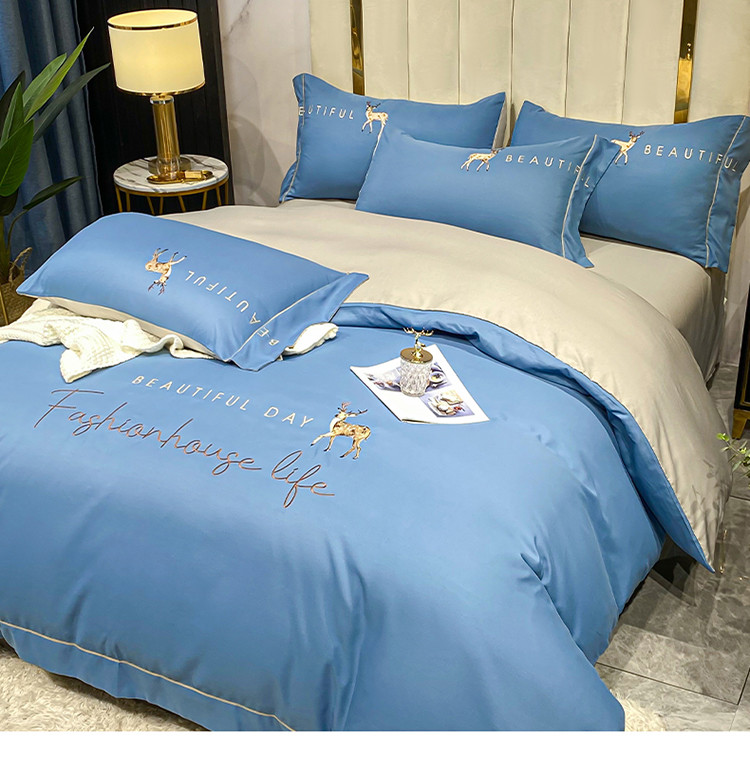 金麦 2021亲肤刺绣磨毛四件套一鹿有你系列一鹿有你-宾利蓝