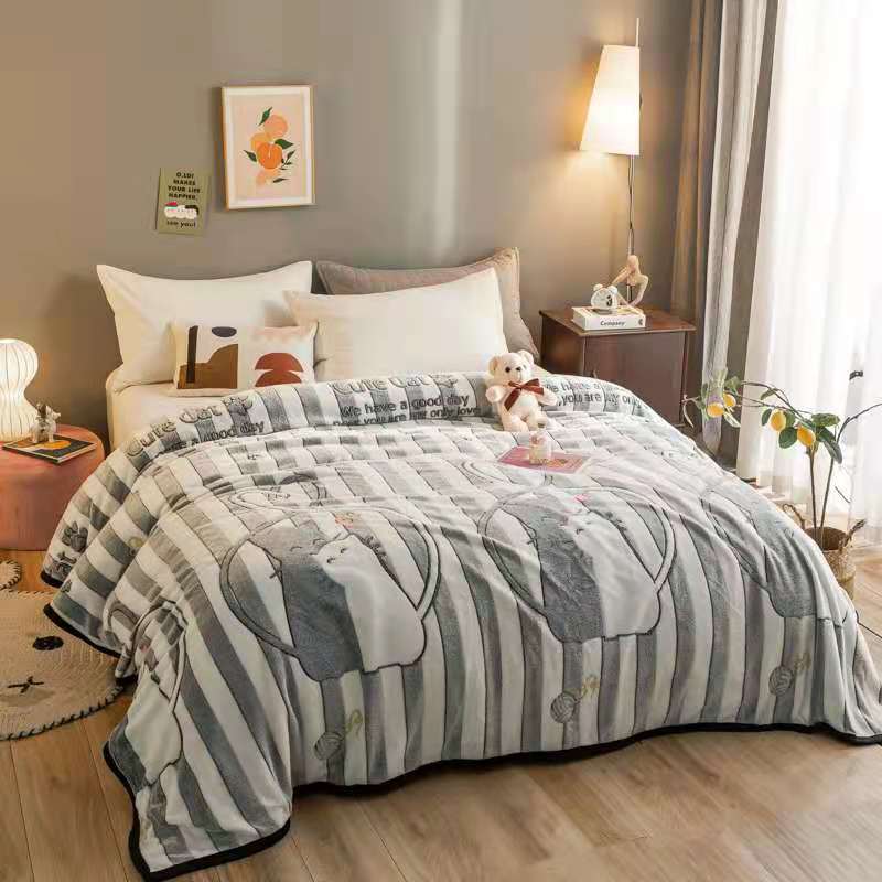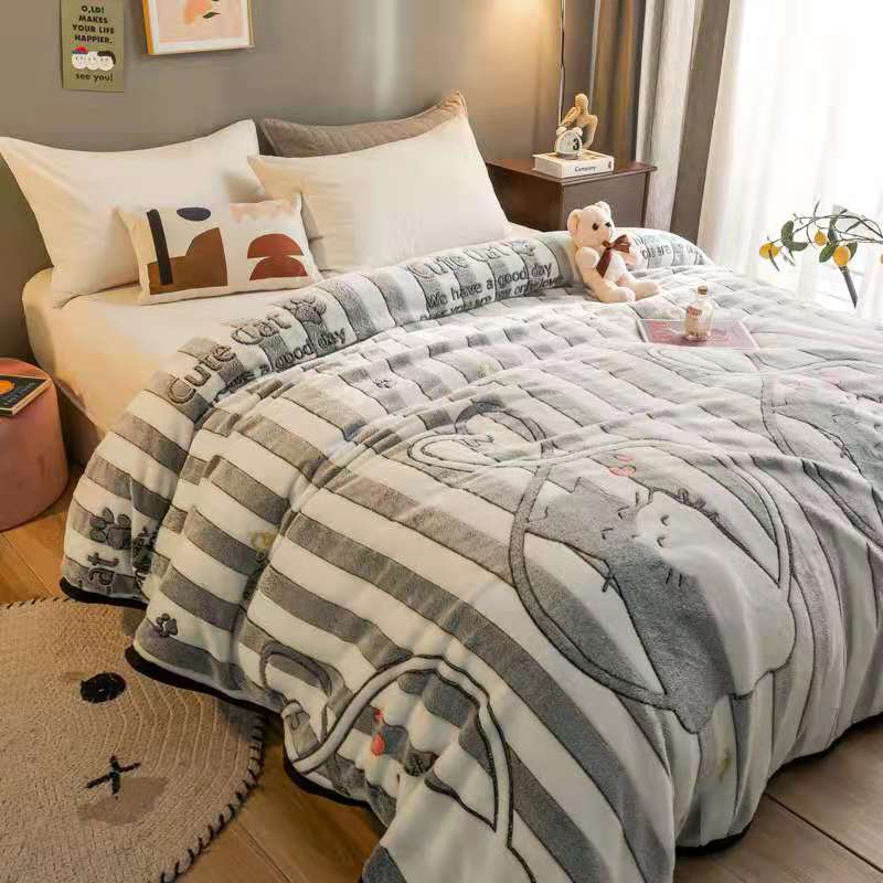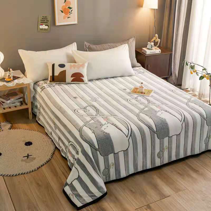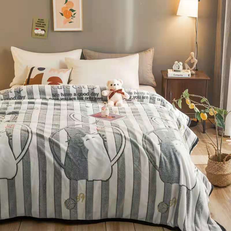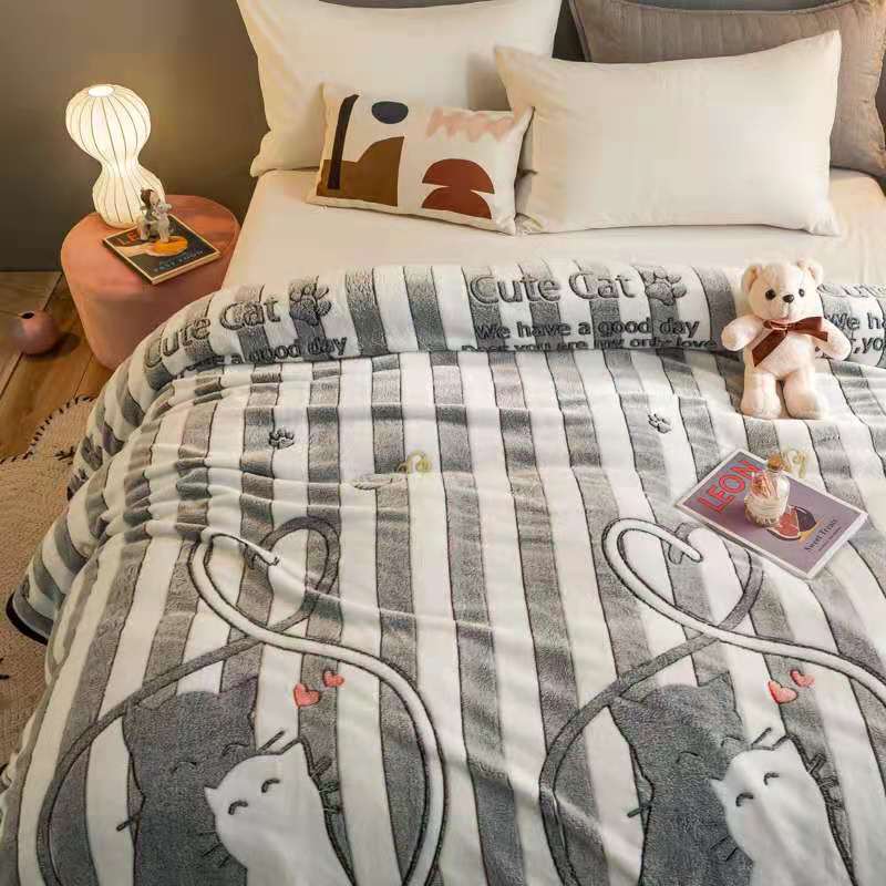好艺佳新款240克雪花绒毯法莱绒毯床单加厚毛毯幸福狸猫
