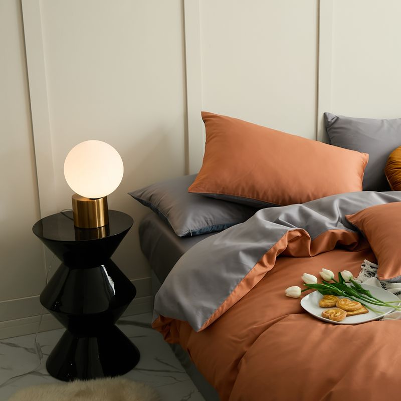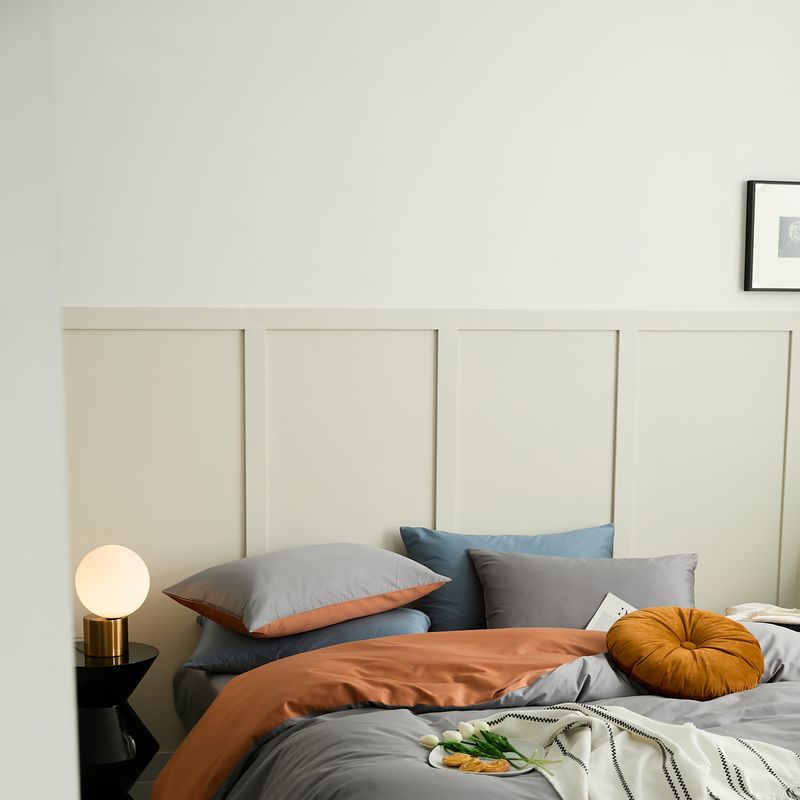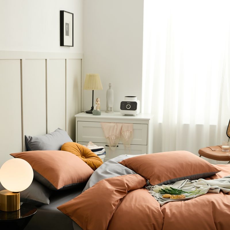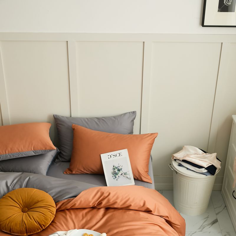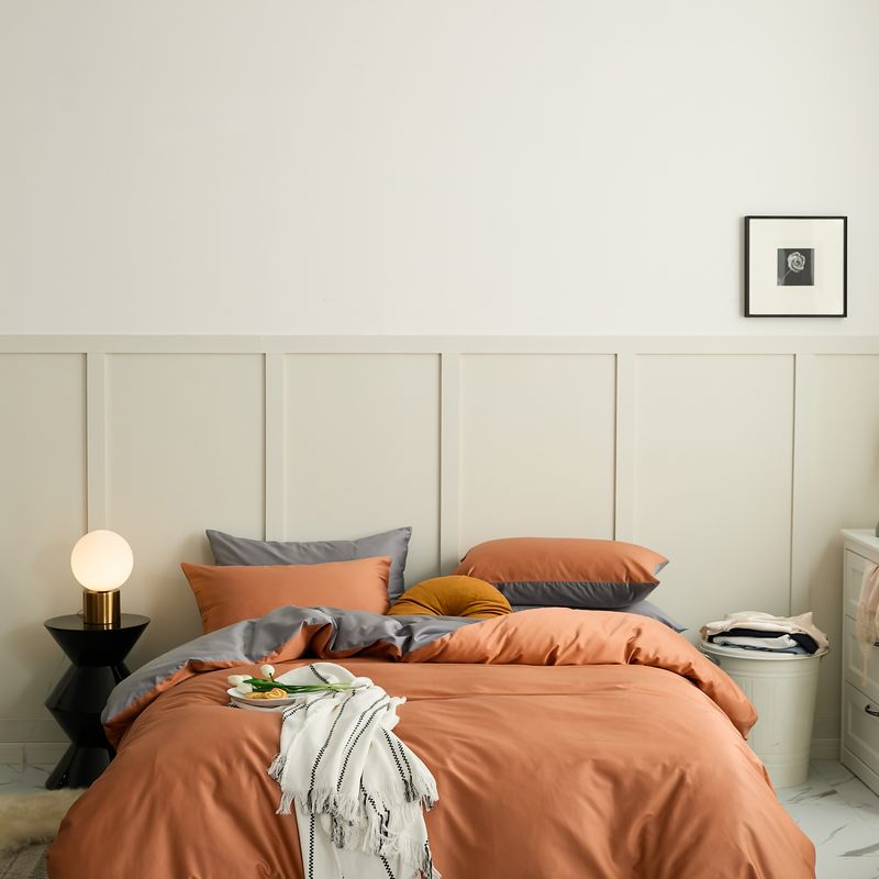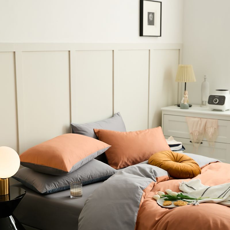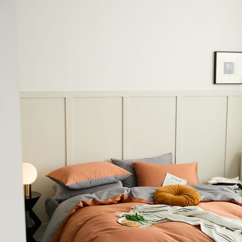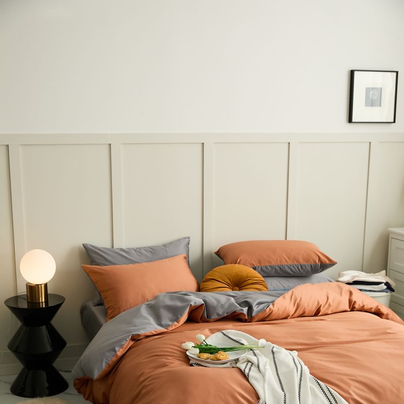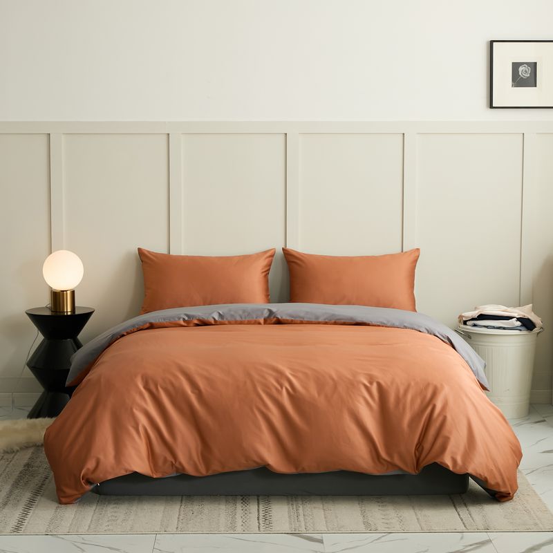 涞澳 2021新款全棉隐形拉链双拼款四件套 橙灰