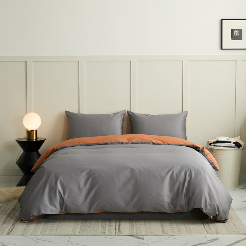 商品名称:涞澳 2021新款全棉隐形拉链双拼款四件套 橙灰
