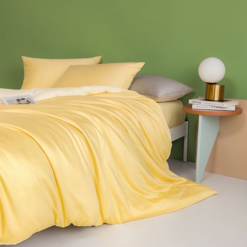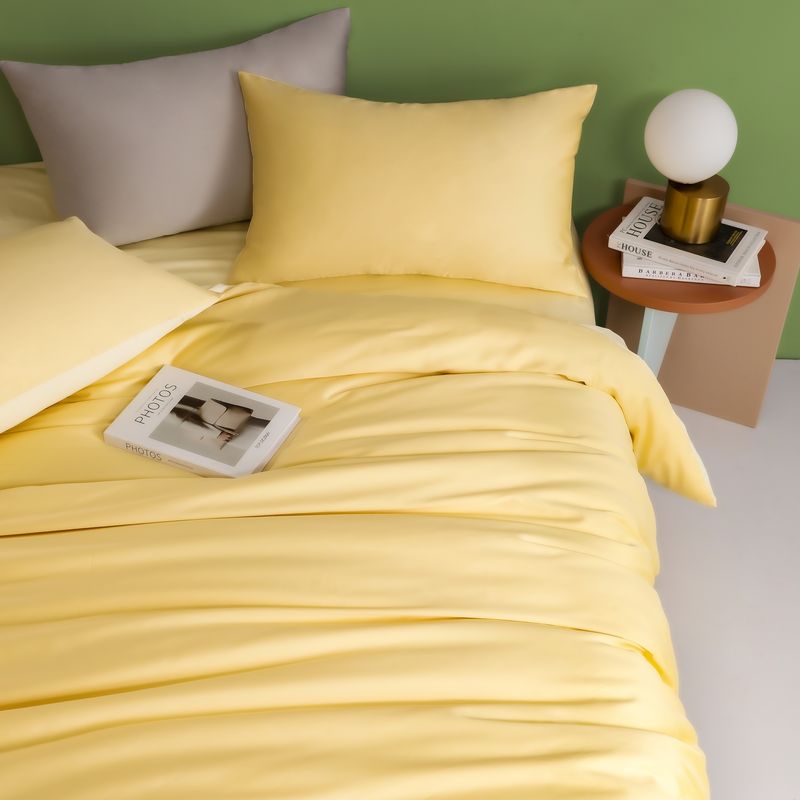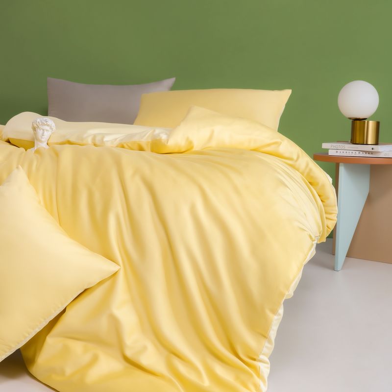 涞澳 2021新款全棉隐形拉链双拼款四件套 黄米