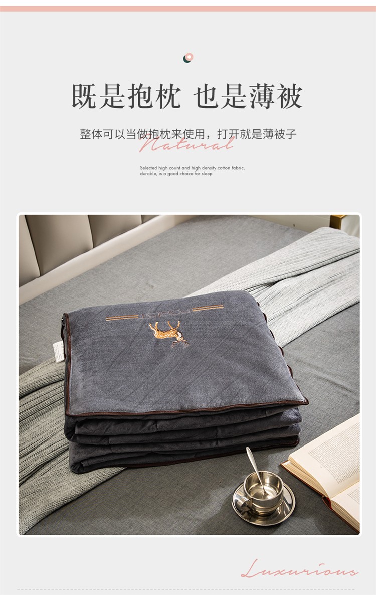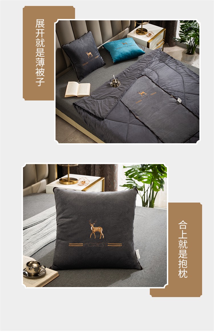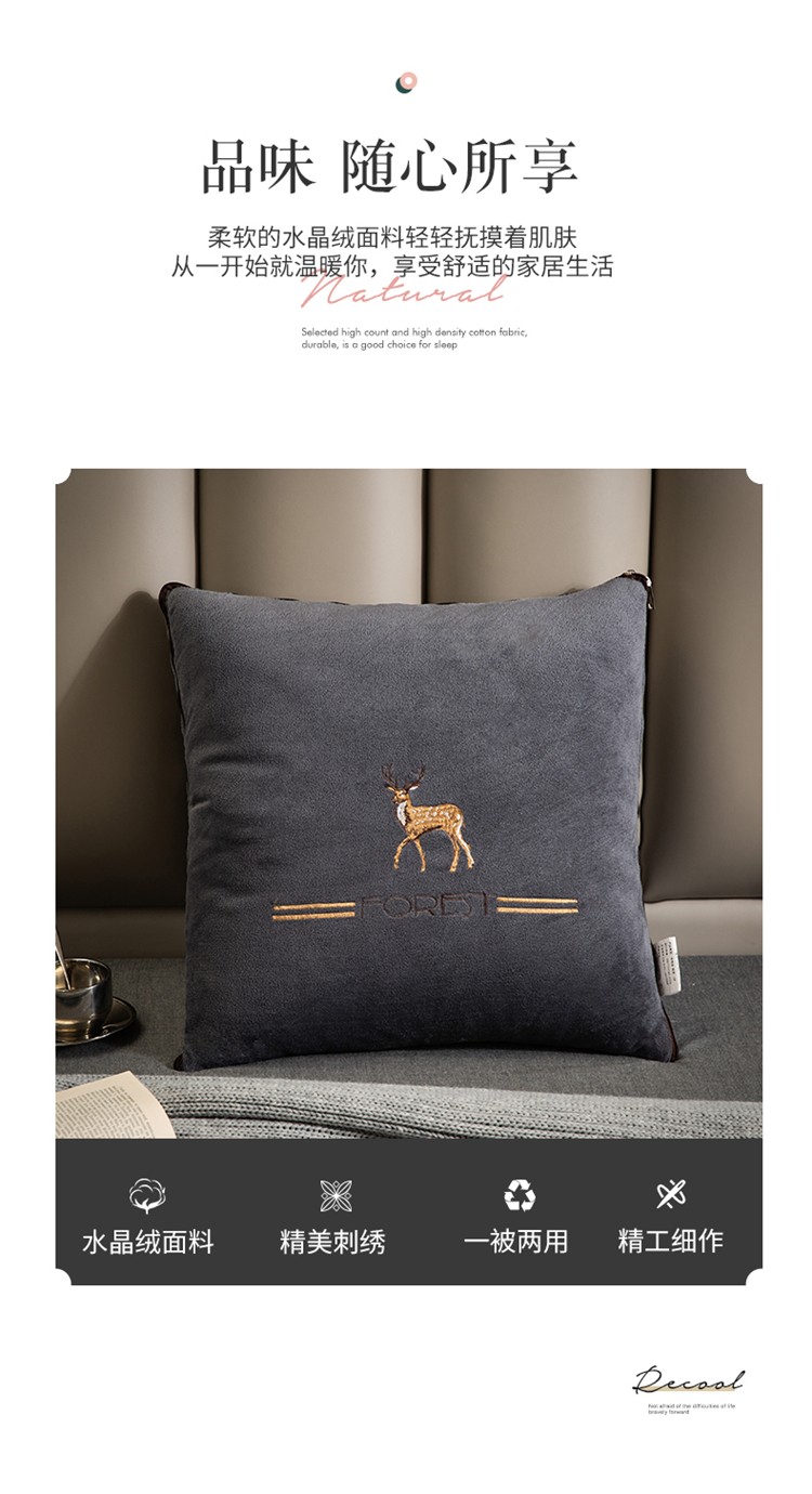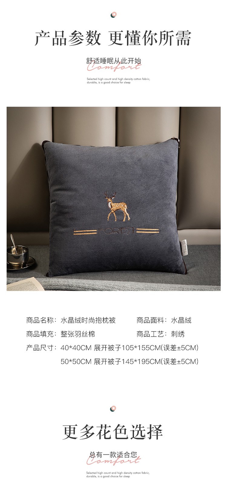 商品名称:翰轩家居 2021新款水晶绒绣花抱枕被 一鹿有你-高级灰