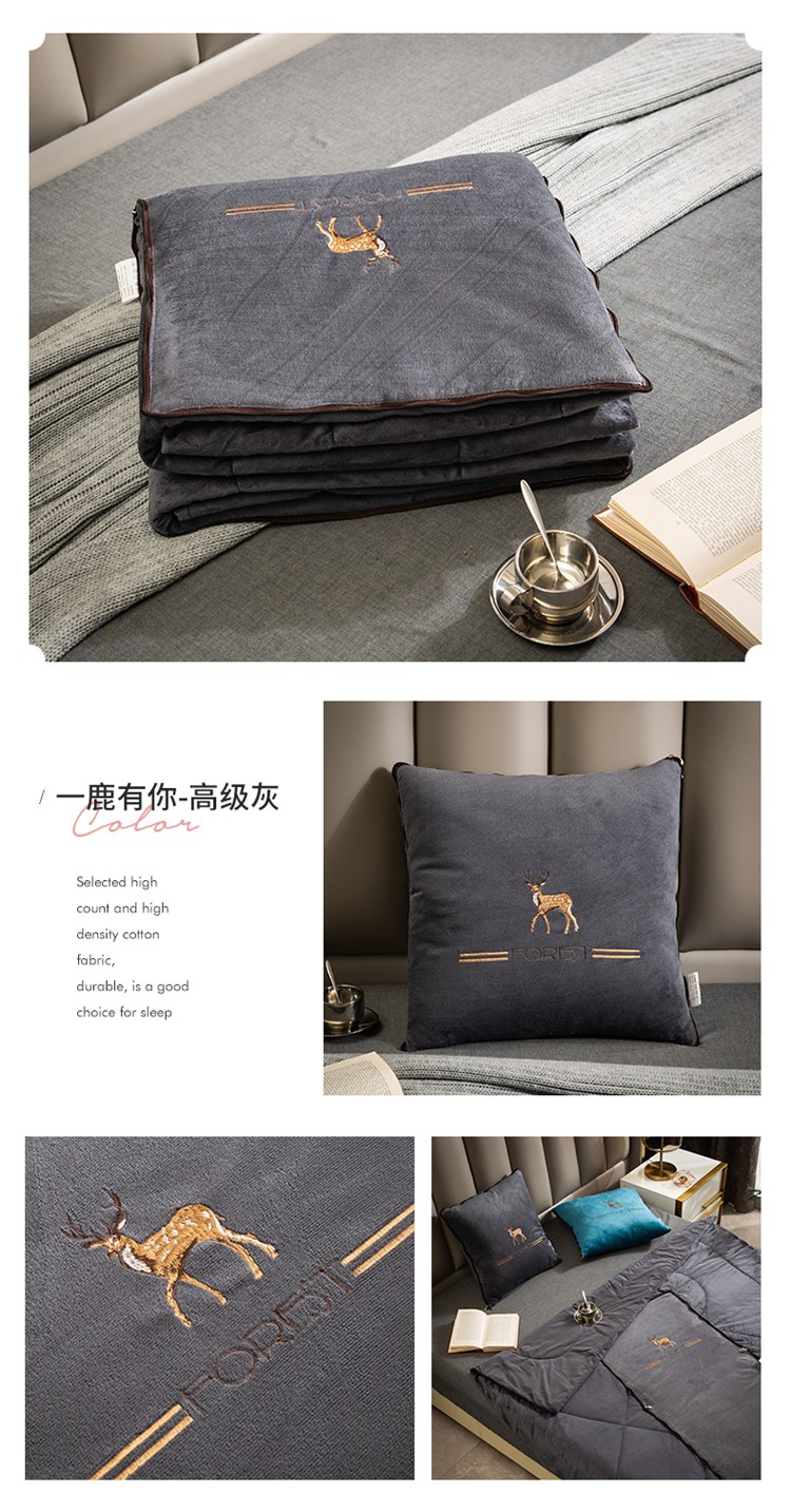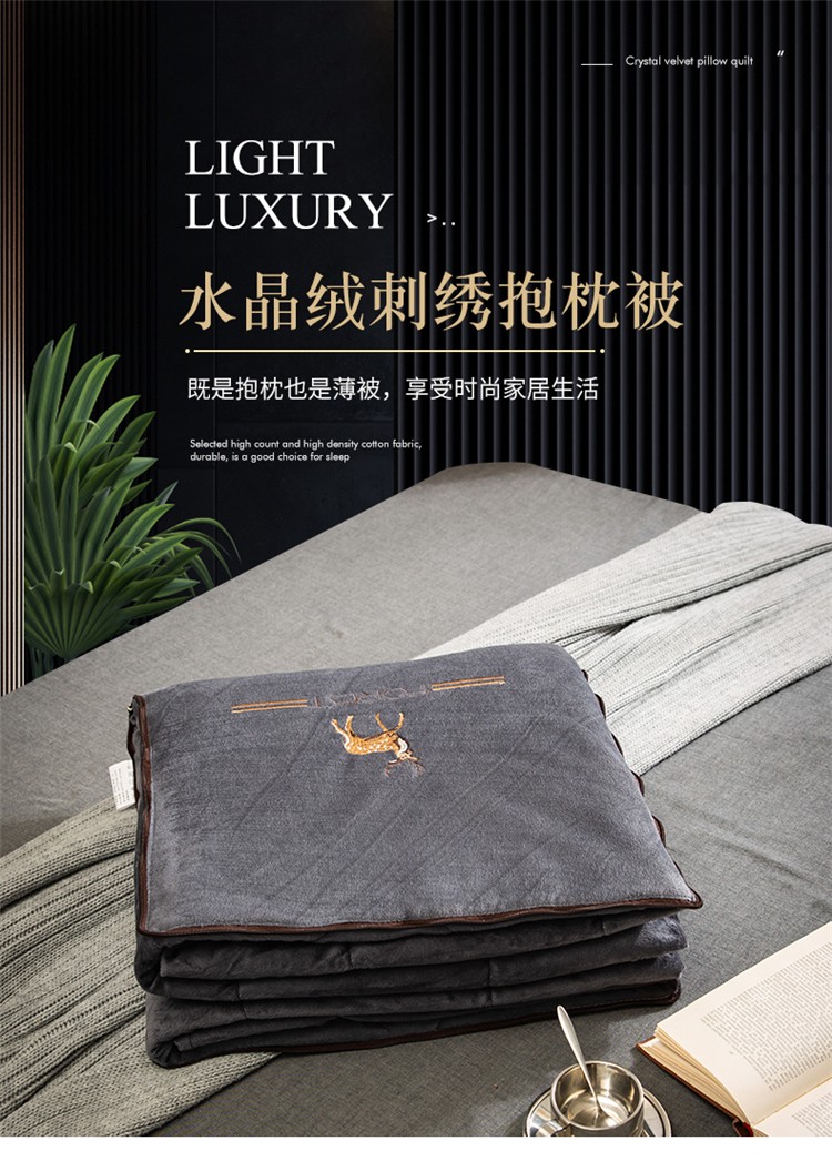 翰轩家居 2021新款水晶绒绣花抱枕被 一鹿有你-高级灰