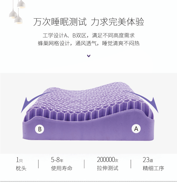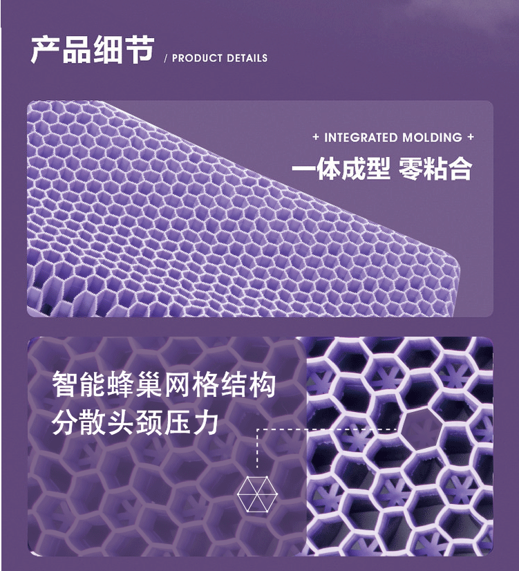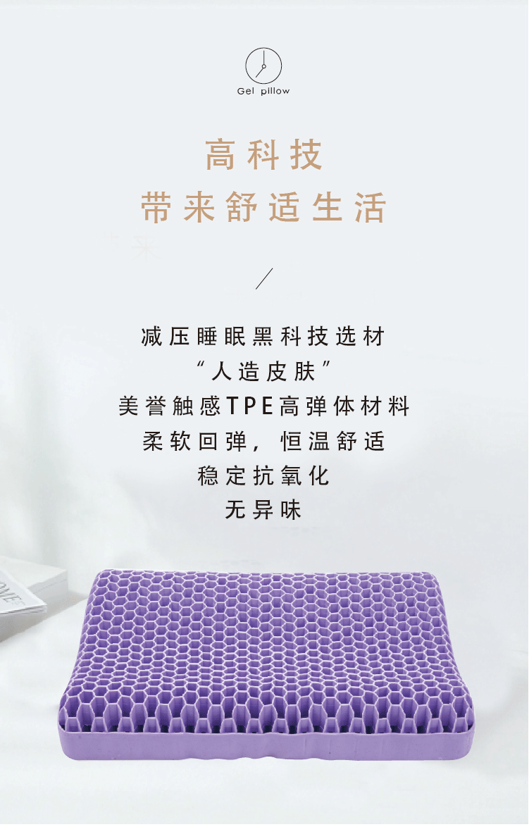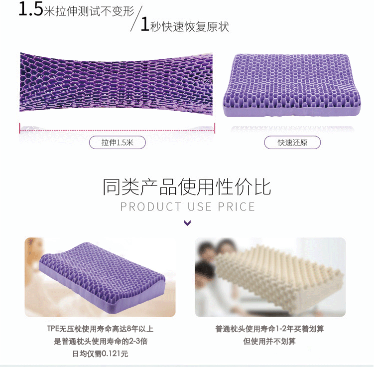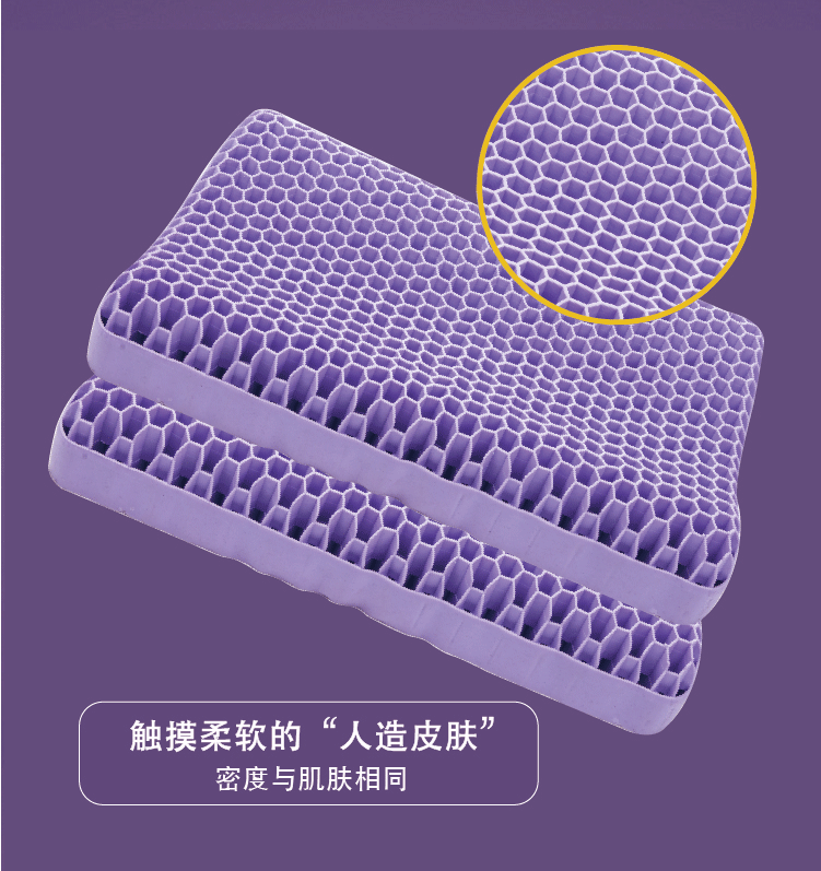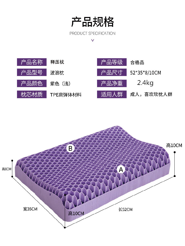 TPE无压枕果胶枕成人52*35枕头可水洗枕头,新款紫色成人蜂窝,枕套,裸枕+枕套,裸枕+枕套+礼盒