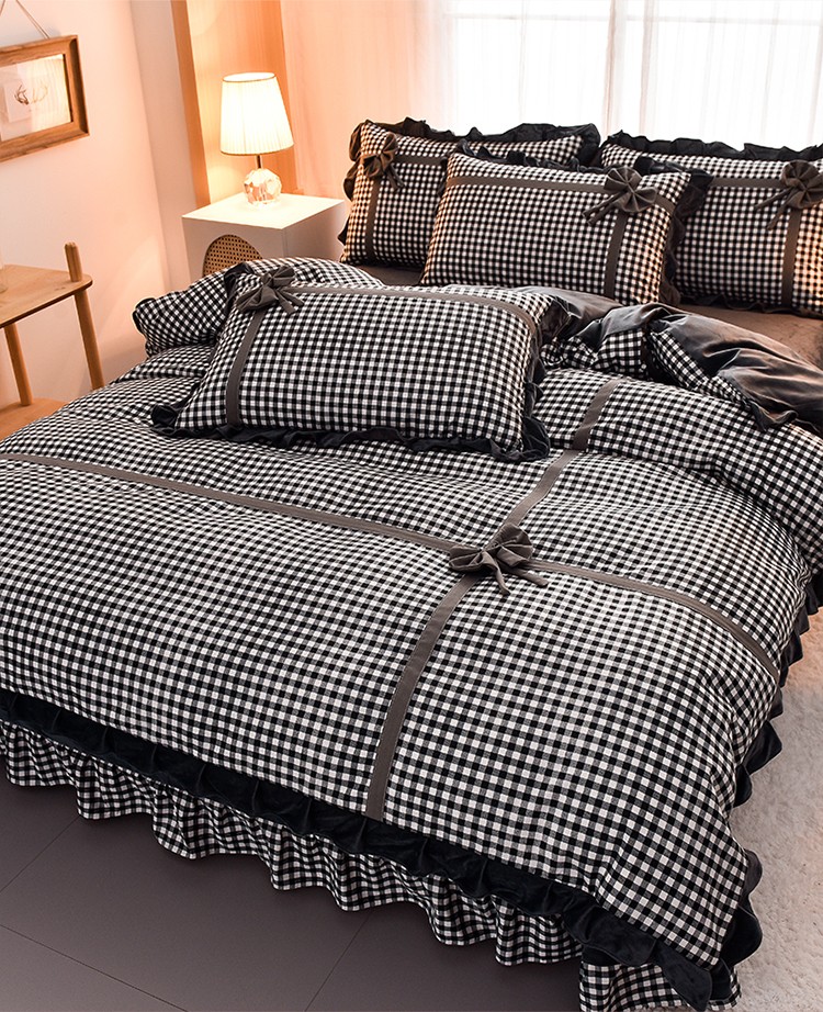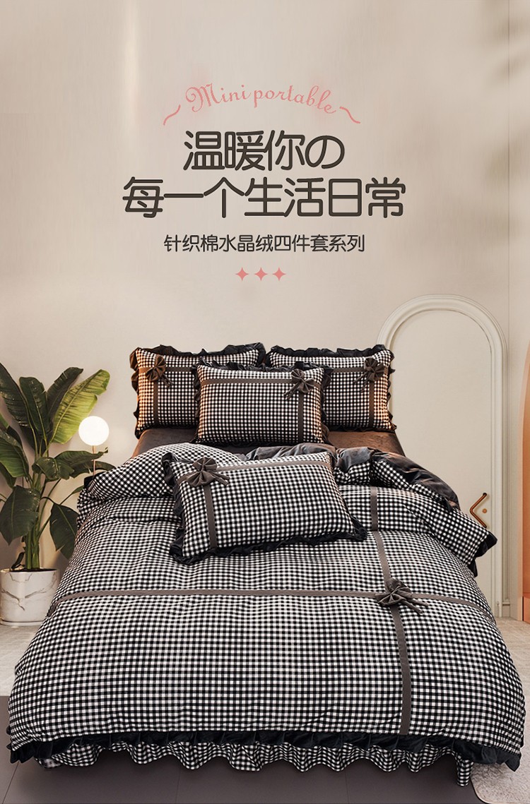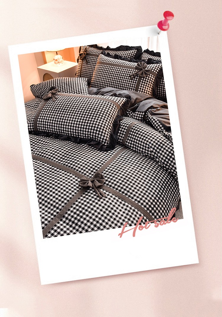 (总)金莎浪 2023新款织爱夏被四件套,草绿格,粉红格,黑白格,深红格