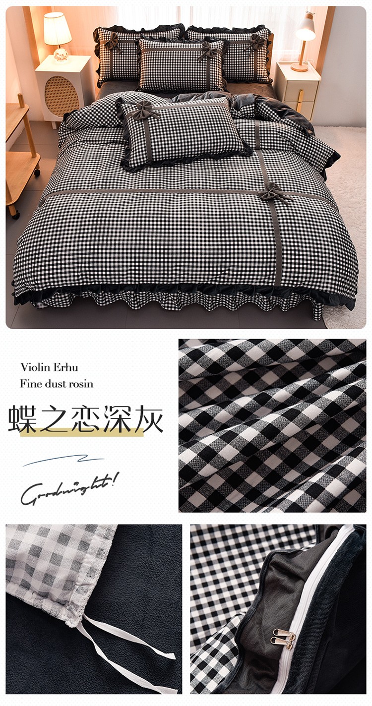商品名称:金莎浪 2022新款A版针织棉B版水晶绒四件套 蝶之恋深灰