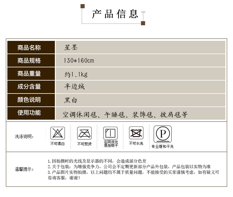 商品名称:(总)暖绵绵家纺 新款半边绒休闲午睡毯-星墨