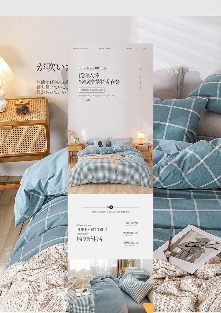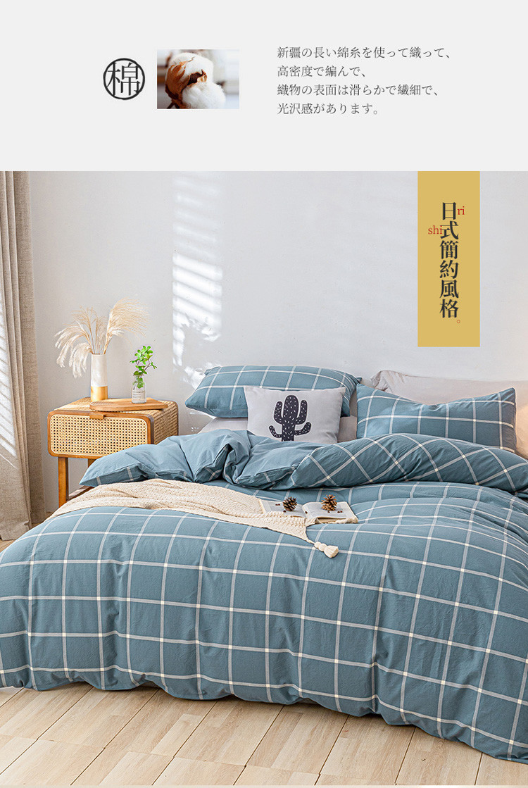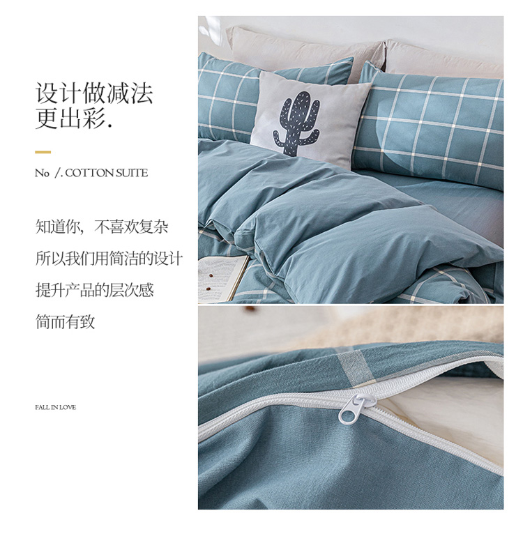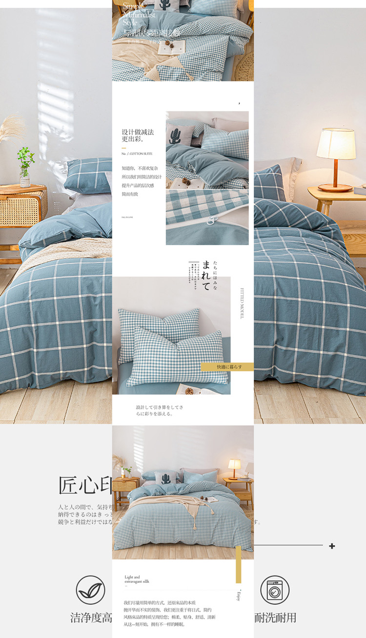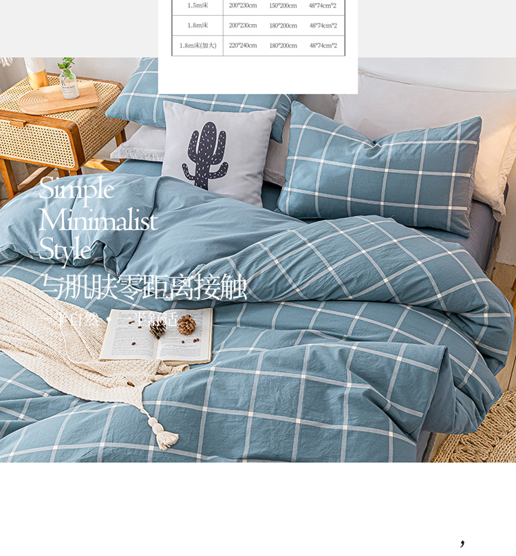 当前位置: 91家纺网 > 商品网购 > 床品套件 > 四件套 > 全棉普通四件套 > 蓝巢家纺 2021新款全棉色织水洗棉四件套 蓝小格