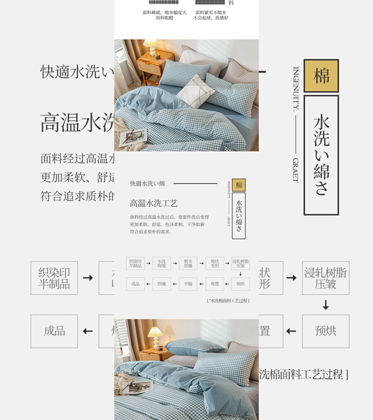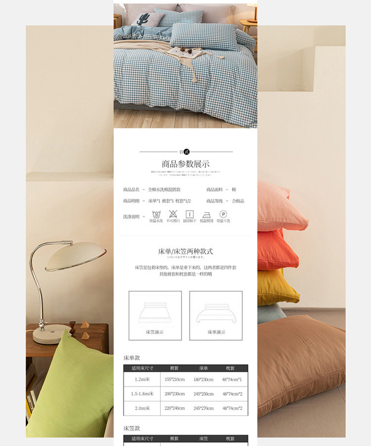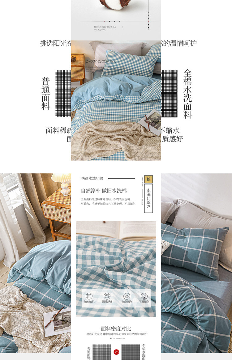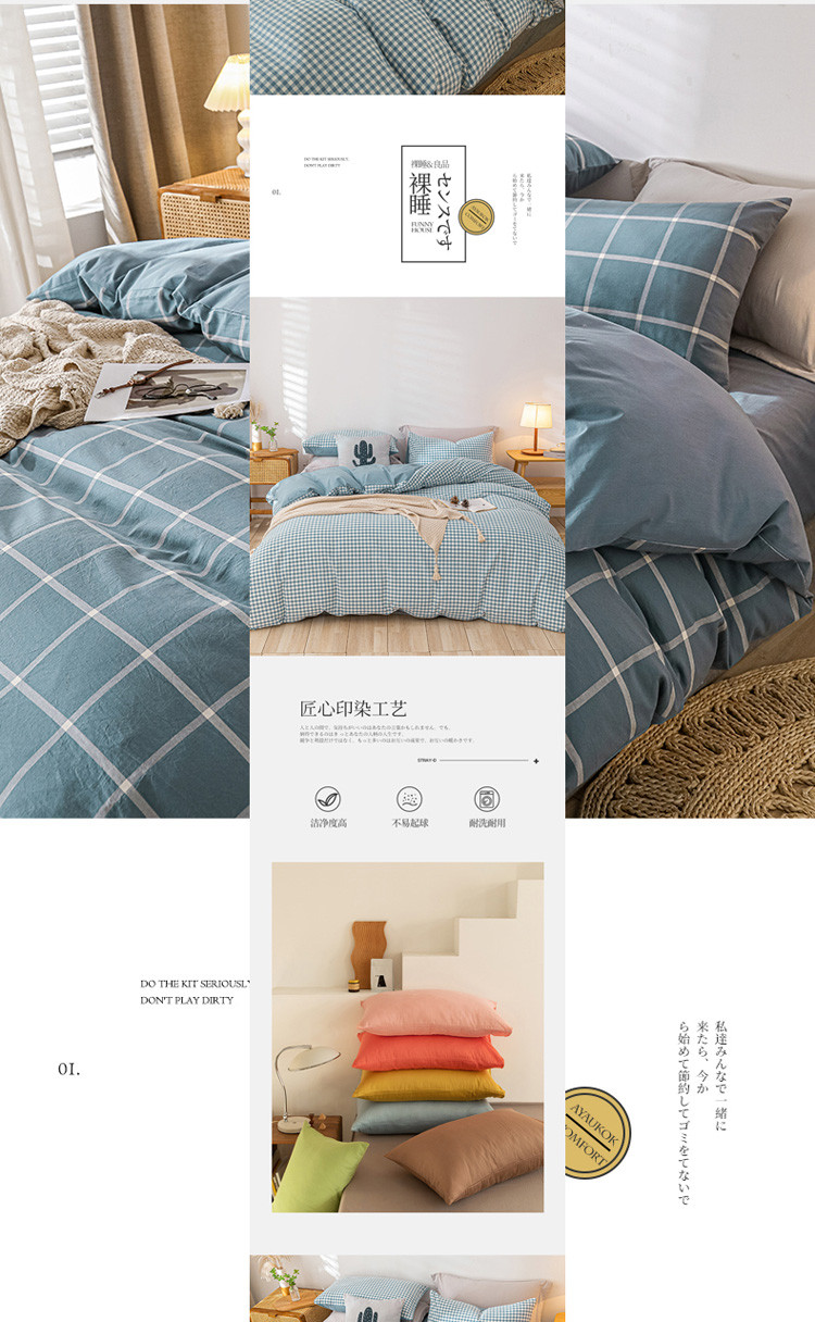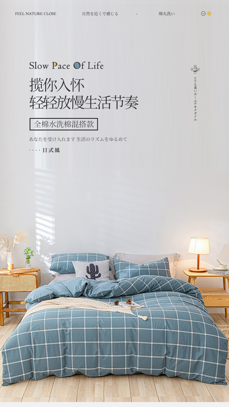 当前位置: 91家纺网 > 商品网购 > 床品套件 > 四件套 > 全棉普通四件套 > 蓝巢家纺 2021新款全棉色织水洗棉四件套 蓝小格