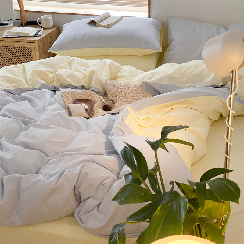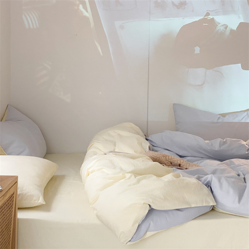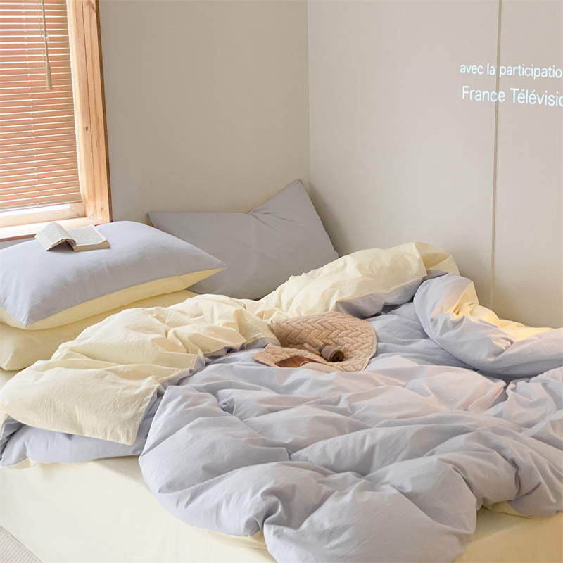 当前位置: 91家纺网 > 商品网购 > 床品套件 > 四件套 > 水洗棉四件套 > 梦享生活家居 2021新款水洗棉双拼四件套 浅蓝+奶茶