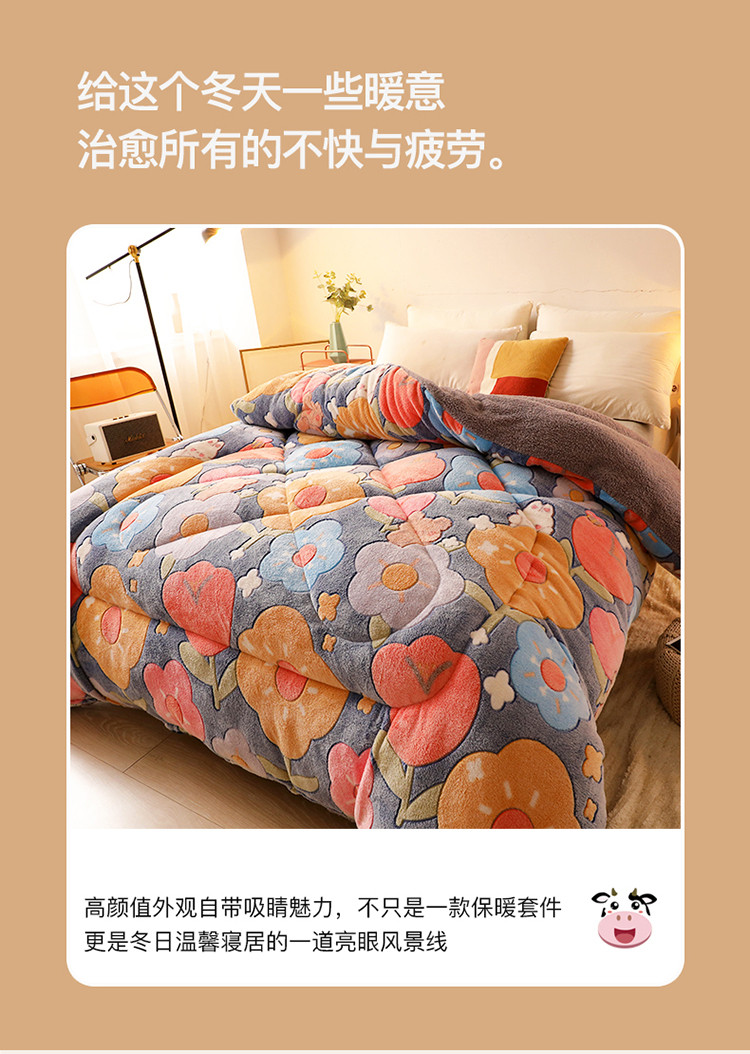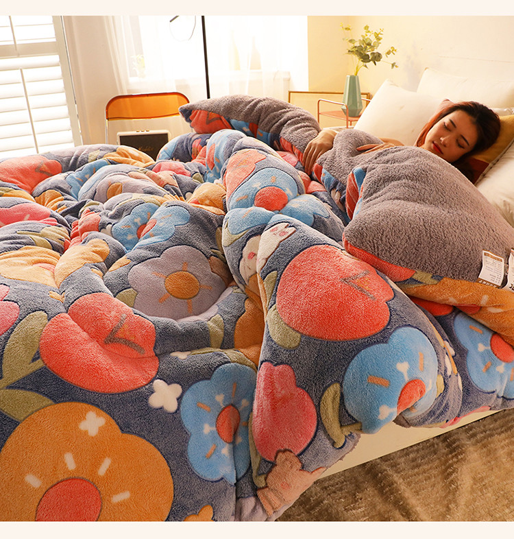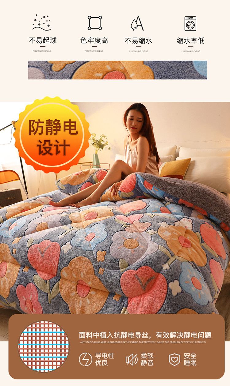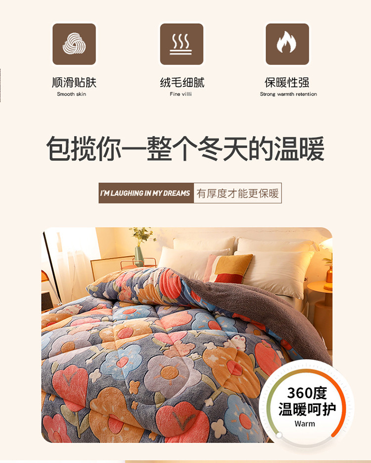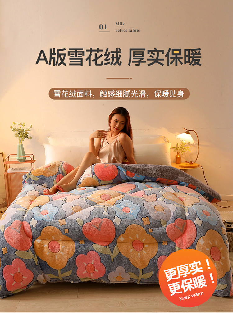 商品名称:梦初语 2021新款加厚保暖雪花绒加羊羔绒冬被子被芯花儿朵朵
