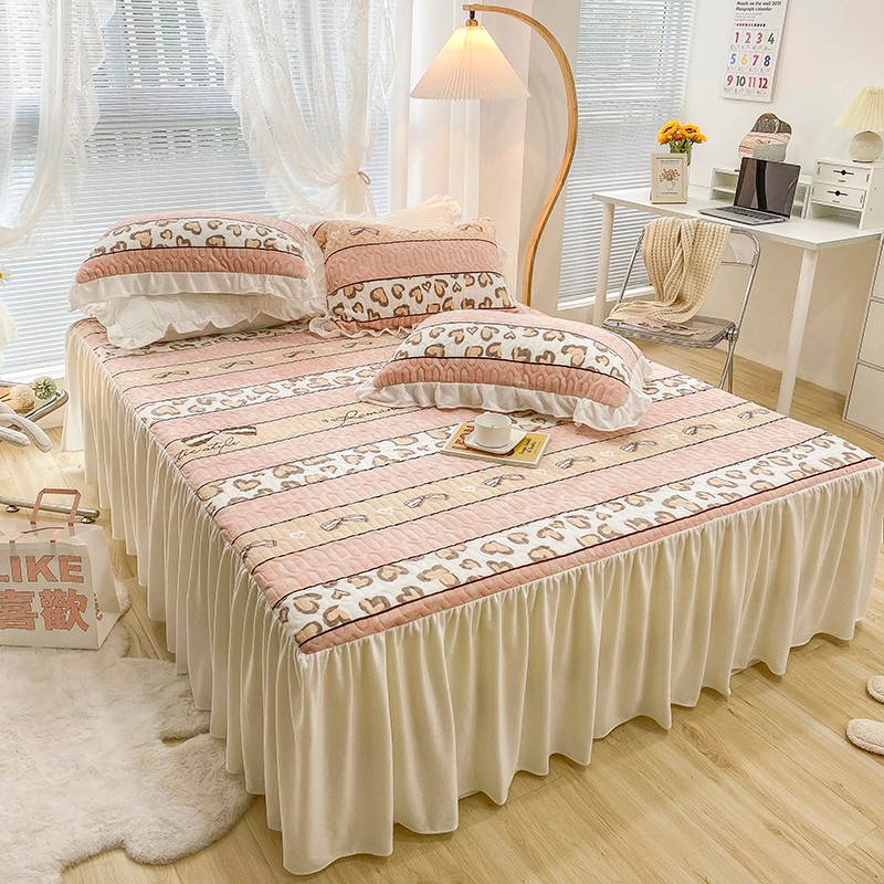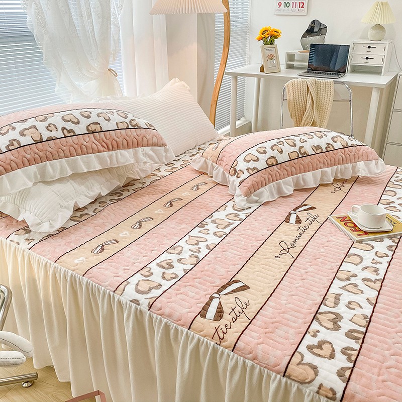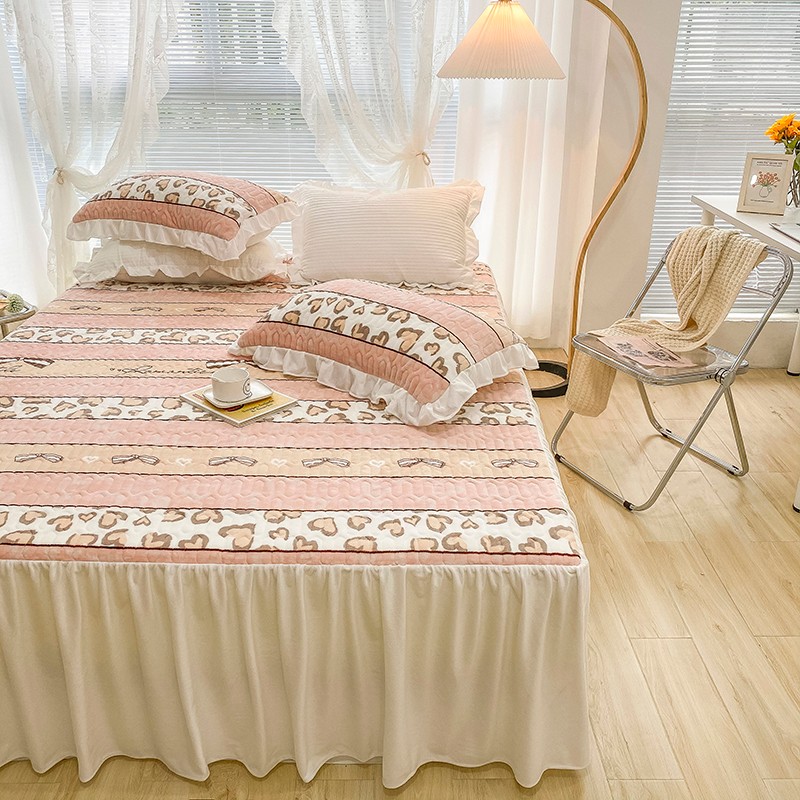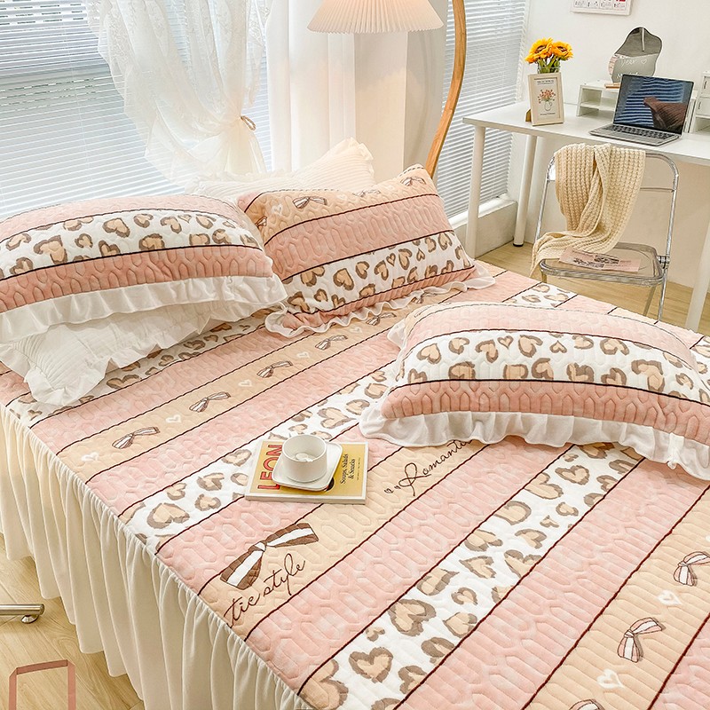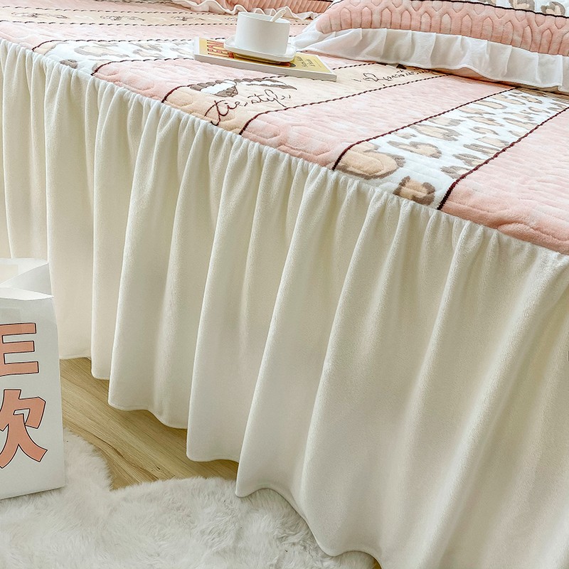 米莱家纺 2021新款牛奶绒夹棉床裙三件套 心朵