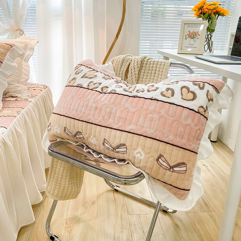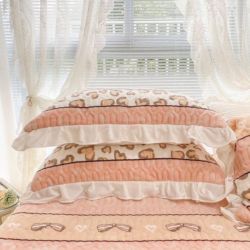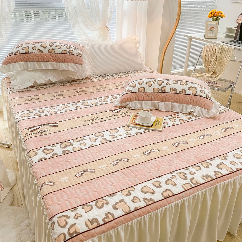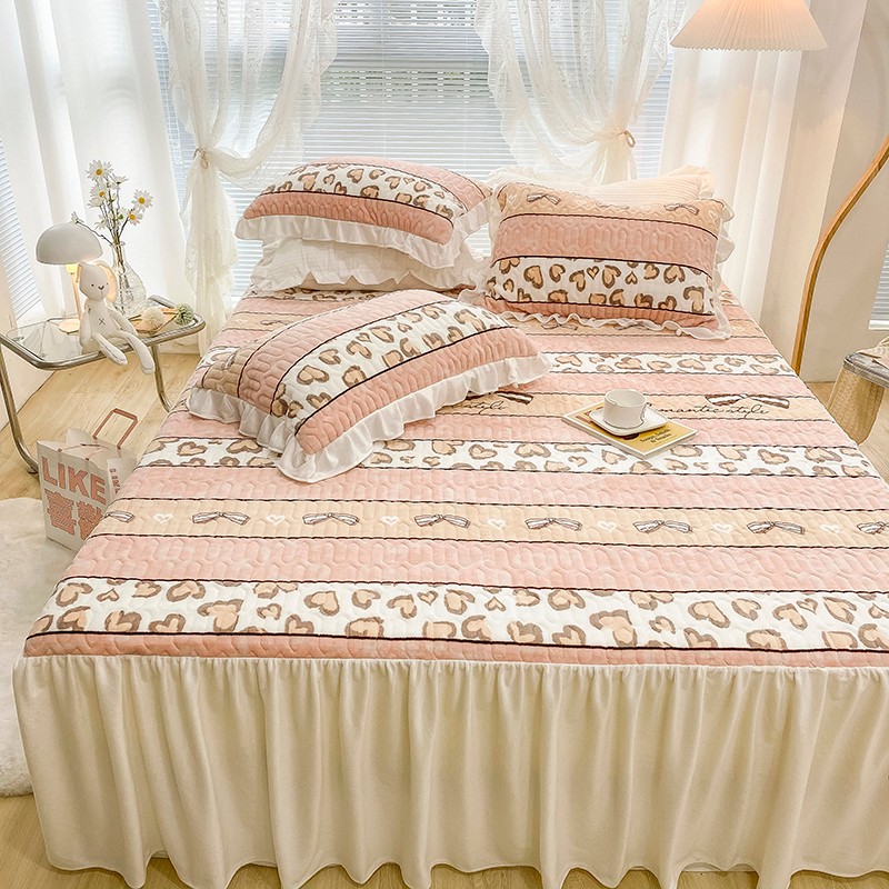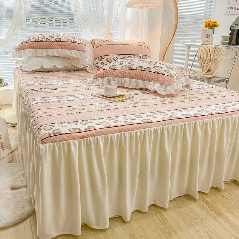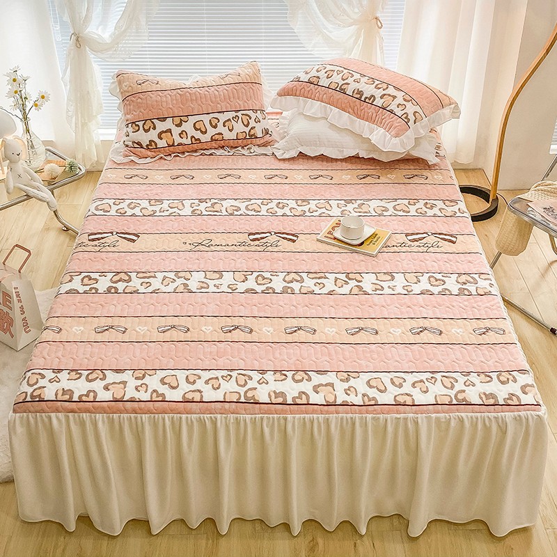 米莱家纺 2021新款牛奶绒夹棉床裙三件套 心朵