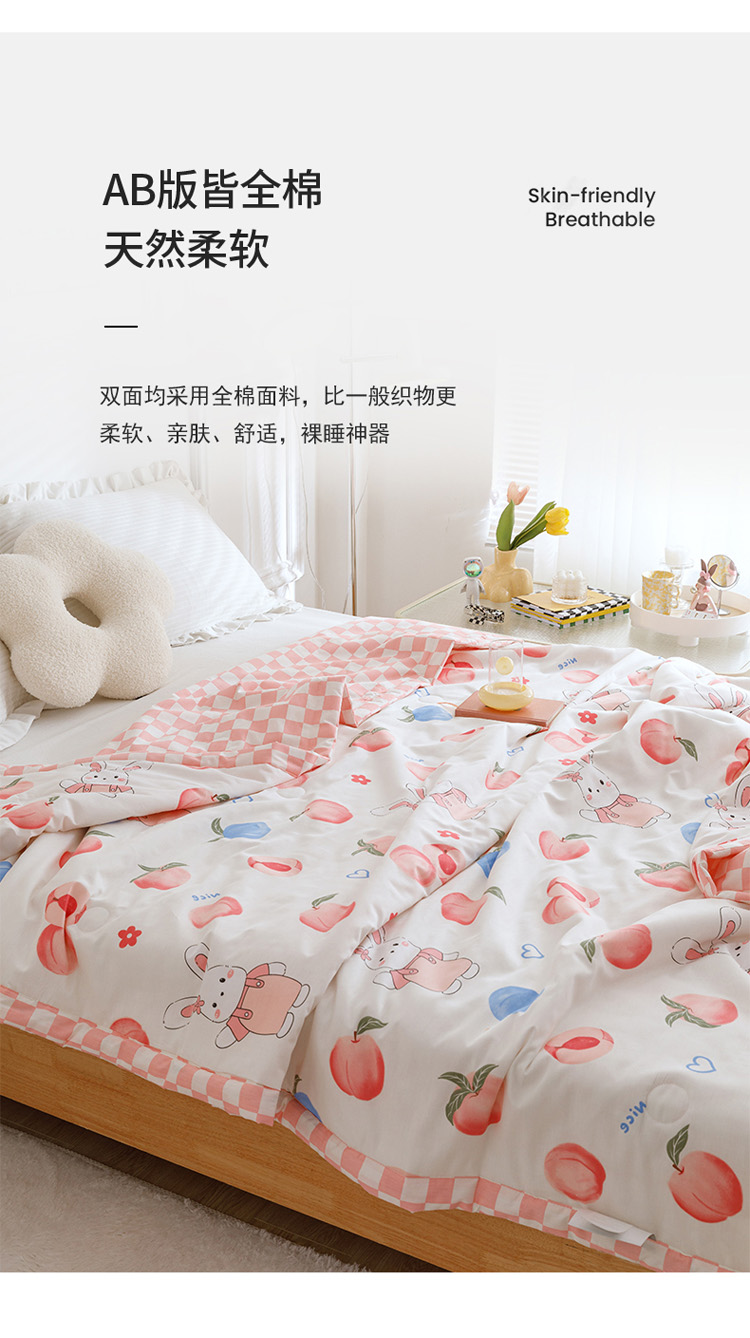 商品名称:兄弟坊 2022新款正宗全棉新疆棉印花夏被 蜜桃兔子