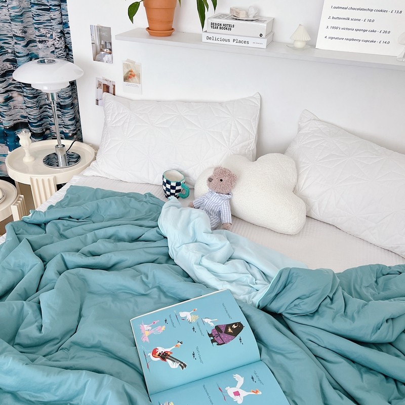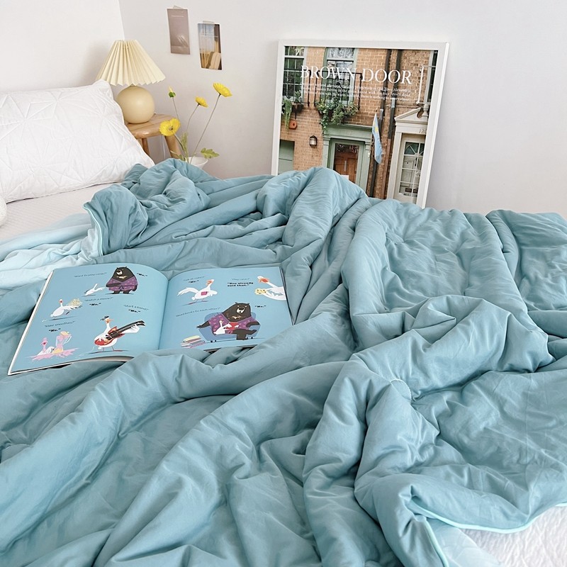 星期八 2022新款马卡龙针织棉大豆夏被 深豆绿浅豆绿
